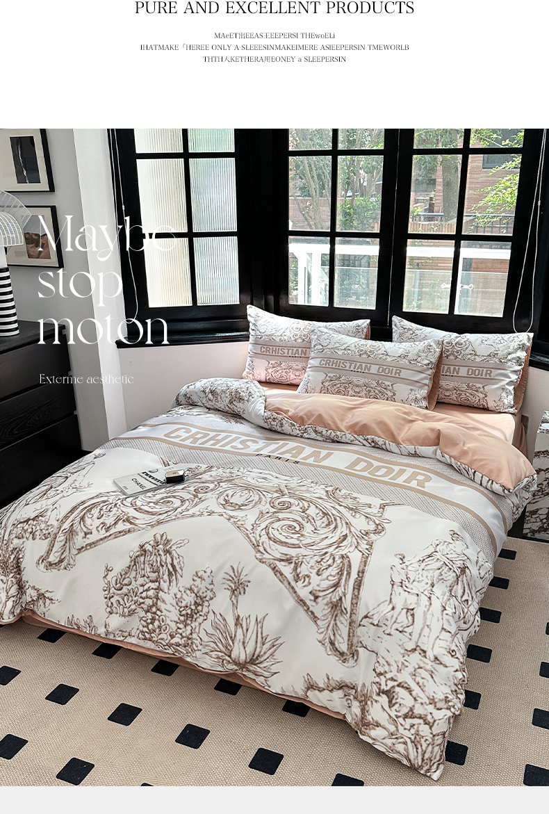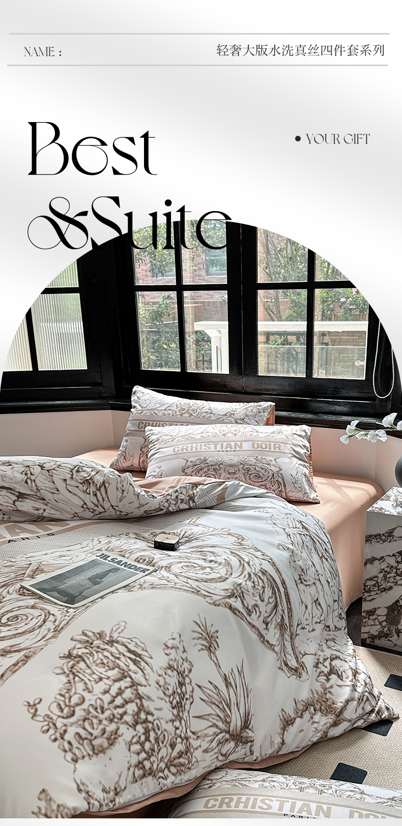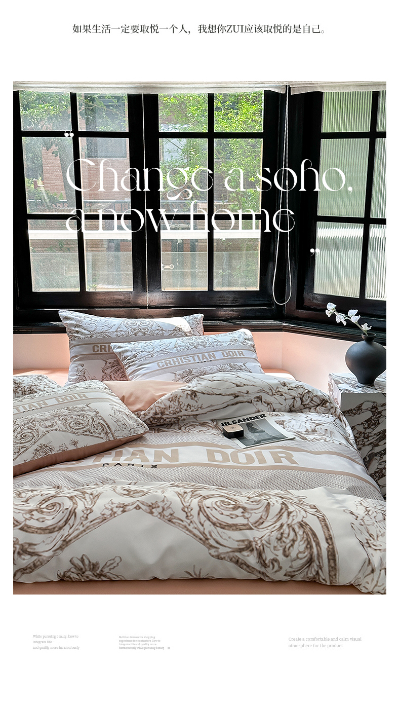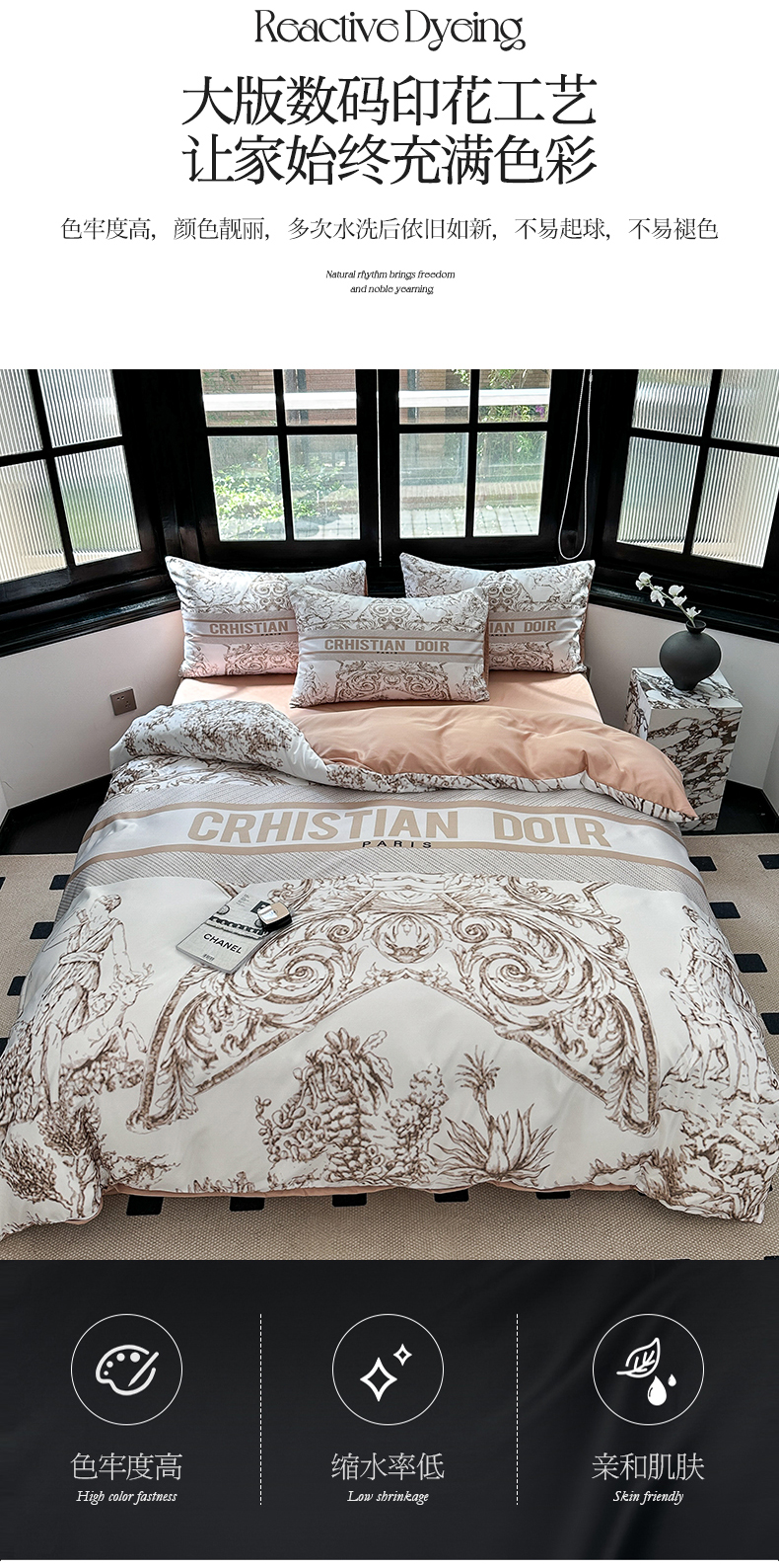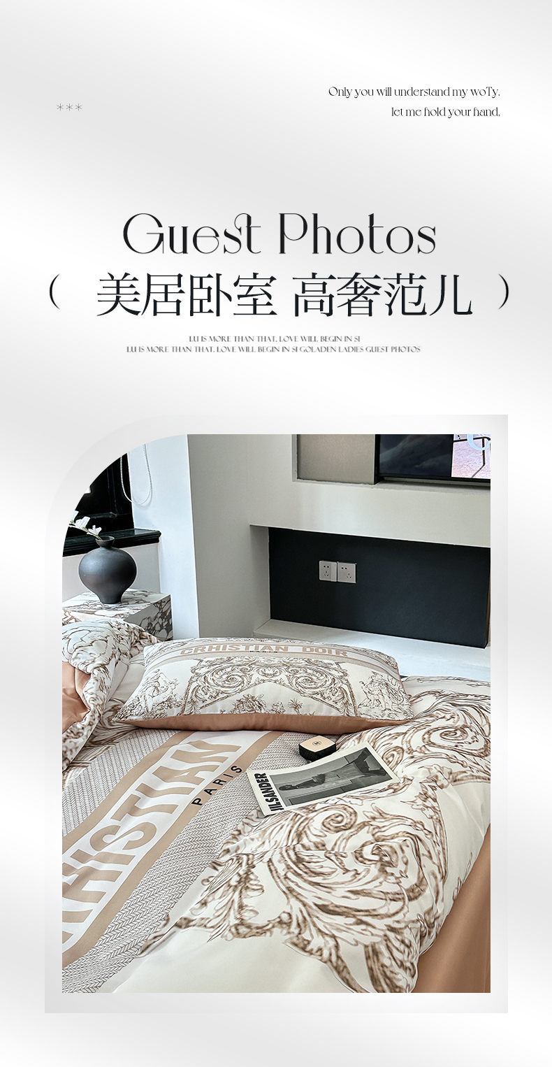 (总)色鬼布艺高端家居主号 2025新款轻奢亲肤纯棉数码印花网红热款四件套,豹纹香,白金V,白香花,大H,黑白迪,黑白V,灰迪,咖古,克莱因,慕斯小姐,山茶花,星空