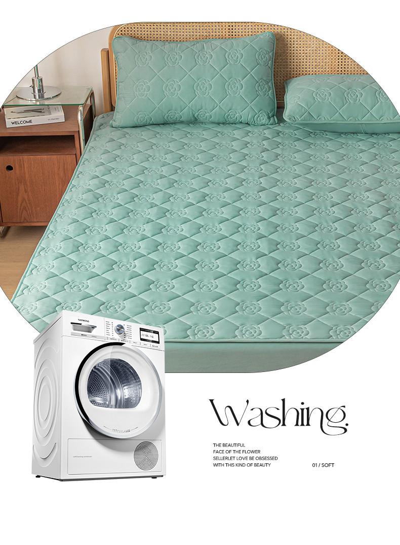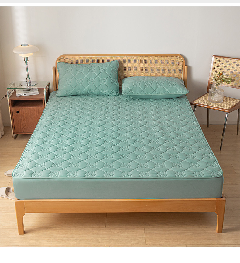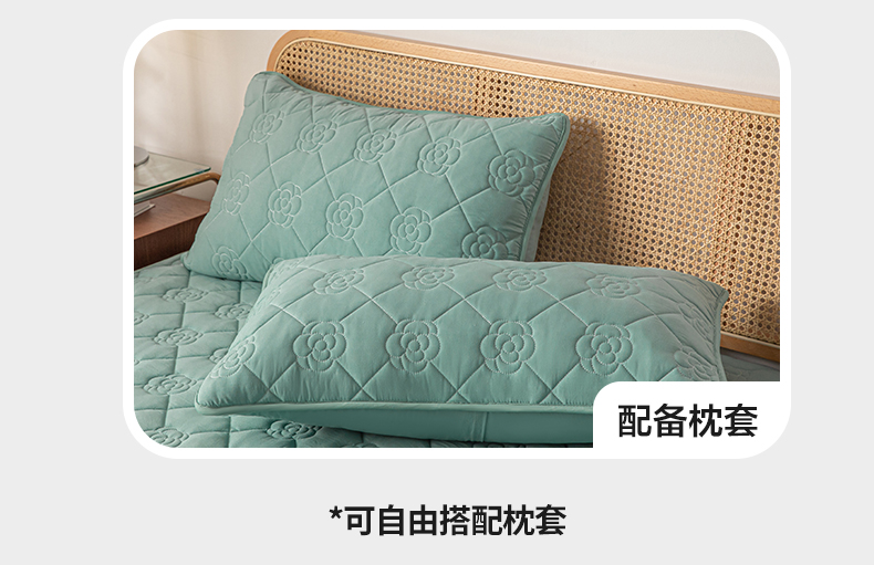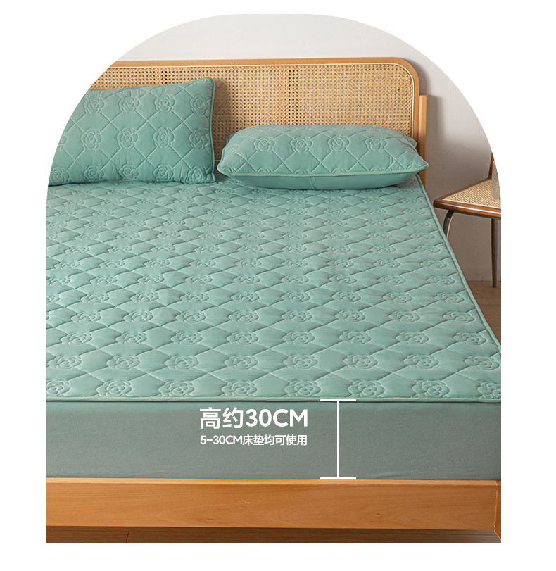 居眠2023新款防水大豆夹棉床笠 山茶花-蓝
