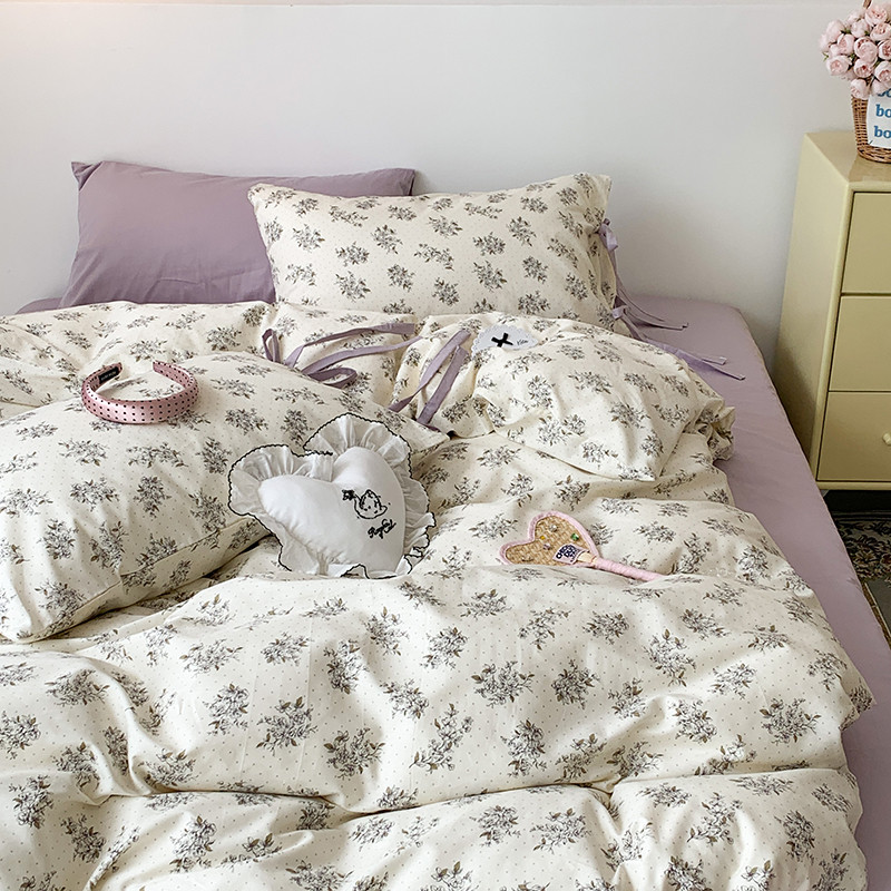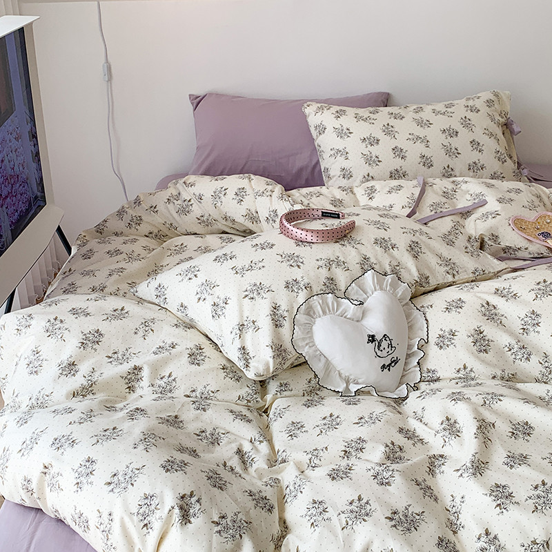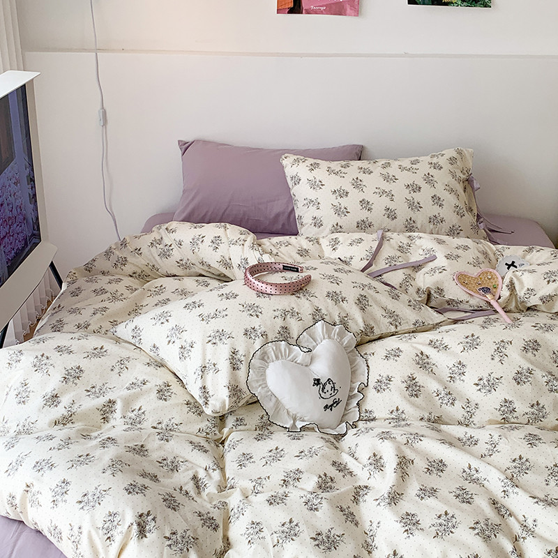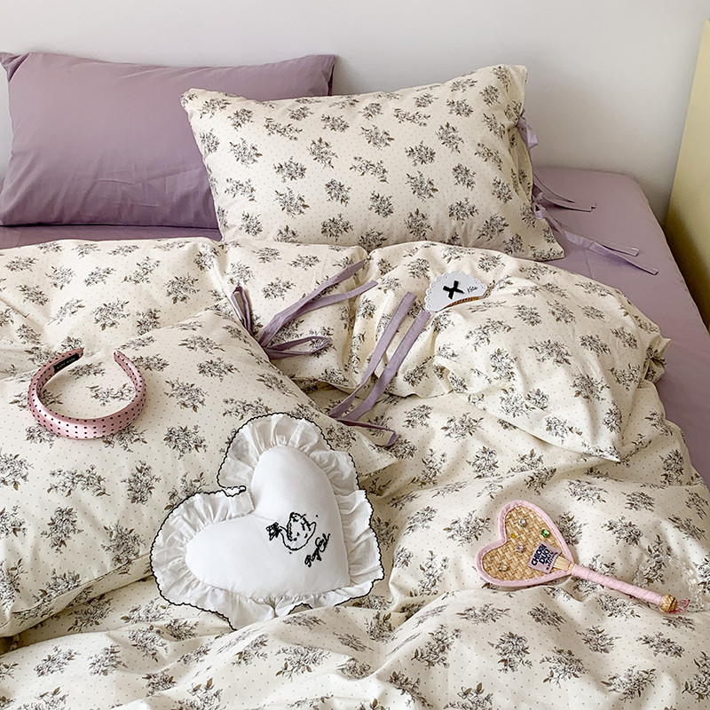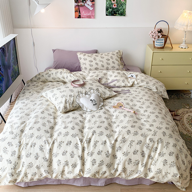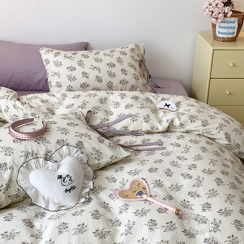 (总)昔可家纺 2023新款全棉小花系列四件套,柏林少女,小小的樱桃,紫色葡萄