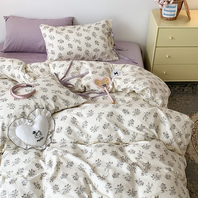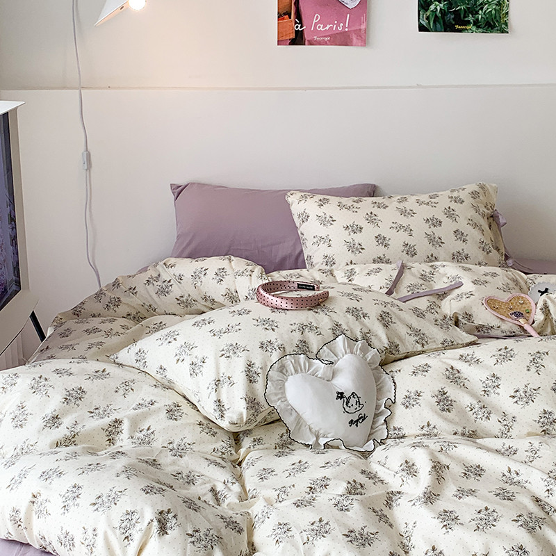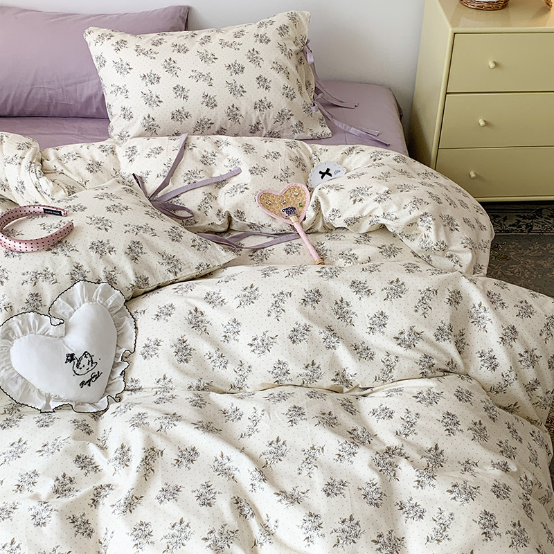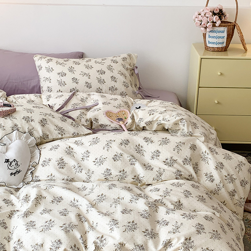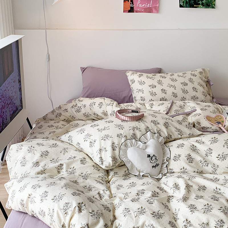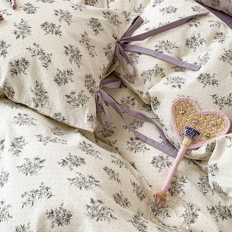 (总)昔可家纺 2023新款全棉小花系列四件套,柏林少女,小小的樱桃,紫色葡萄