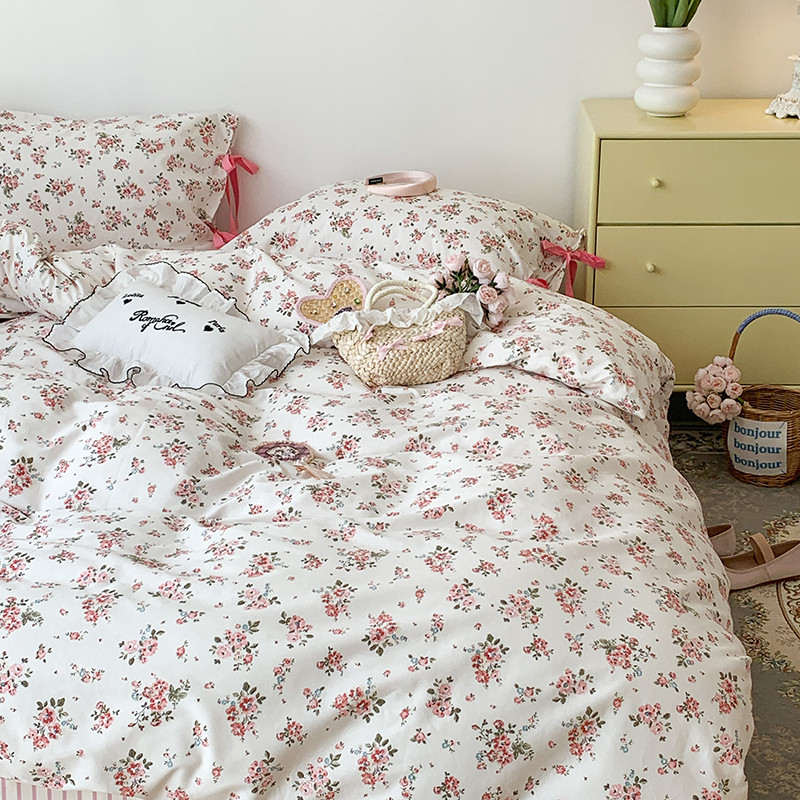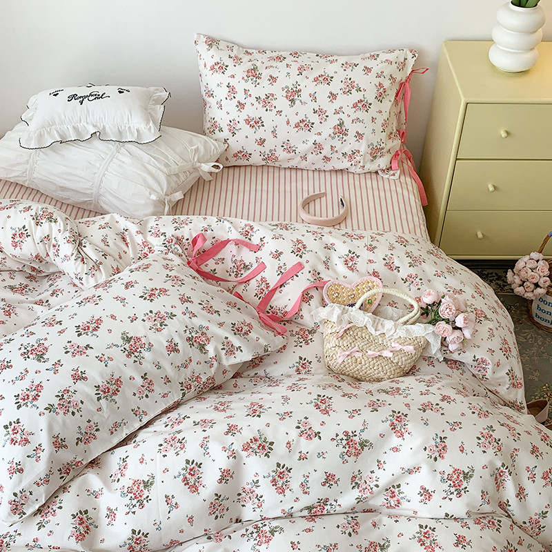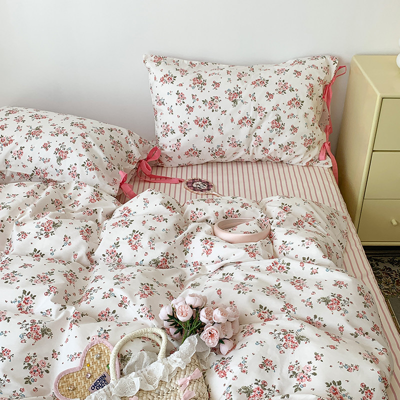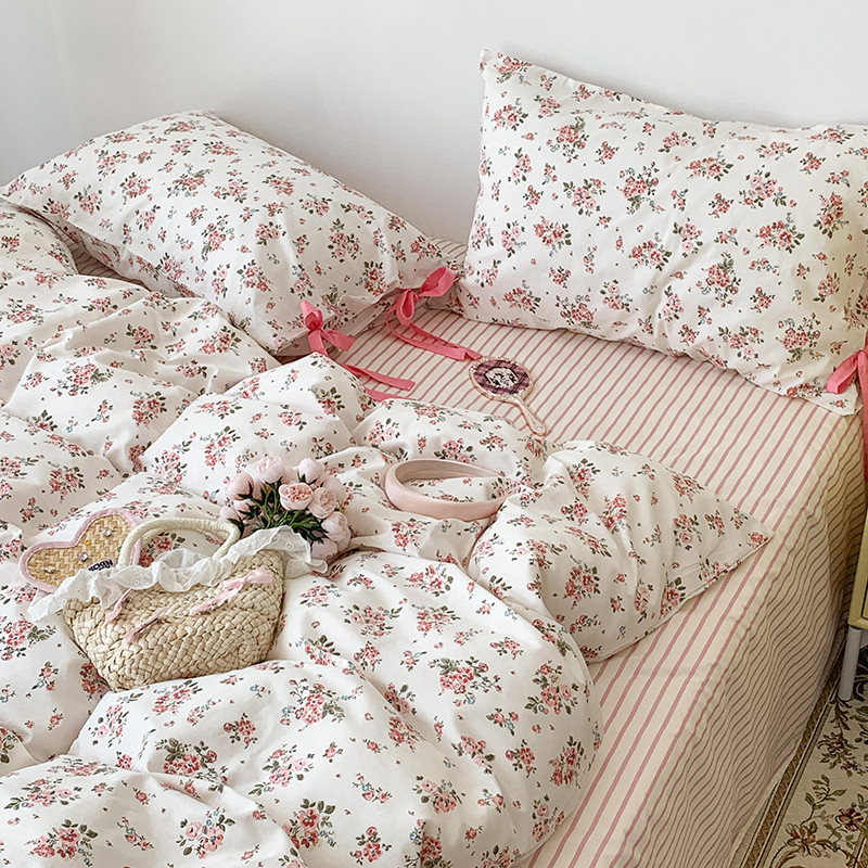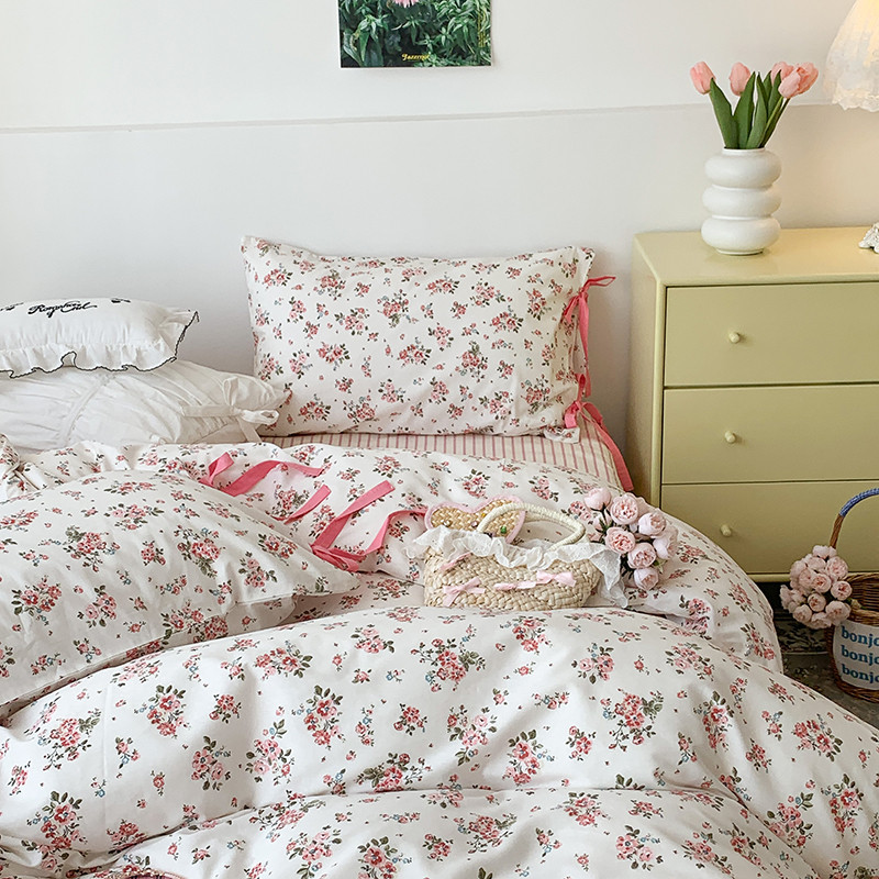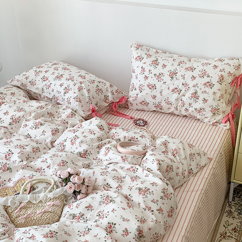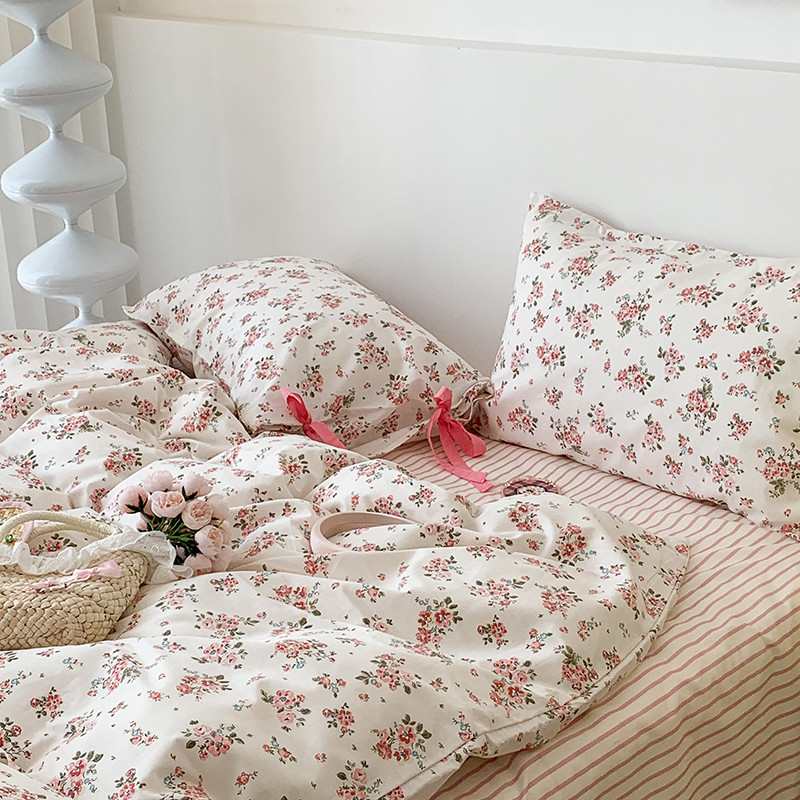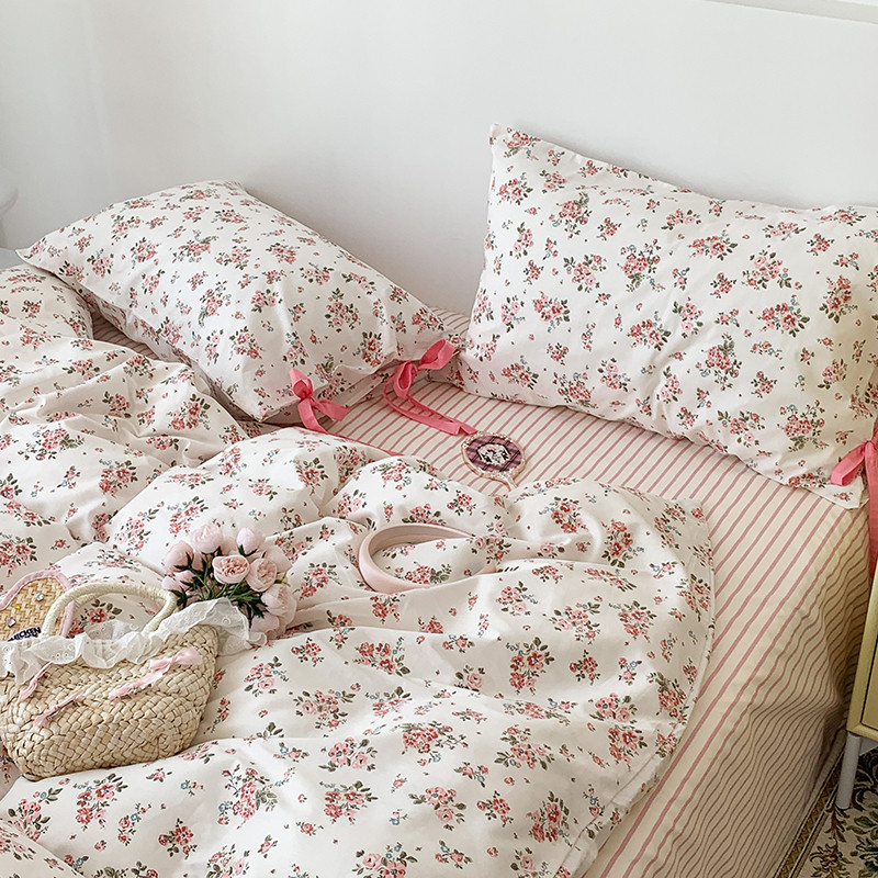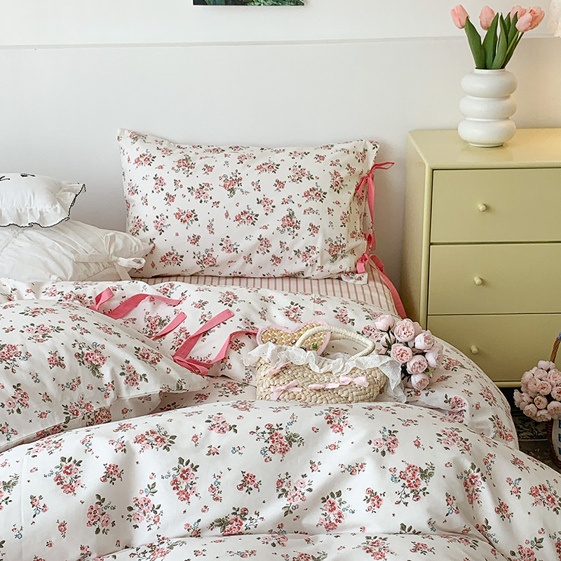 昔可家纺 2023新款全棉蝴蝶结枕套普通款四件套 樱花信子