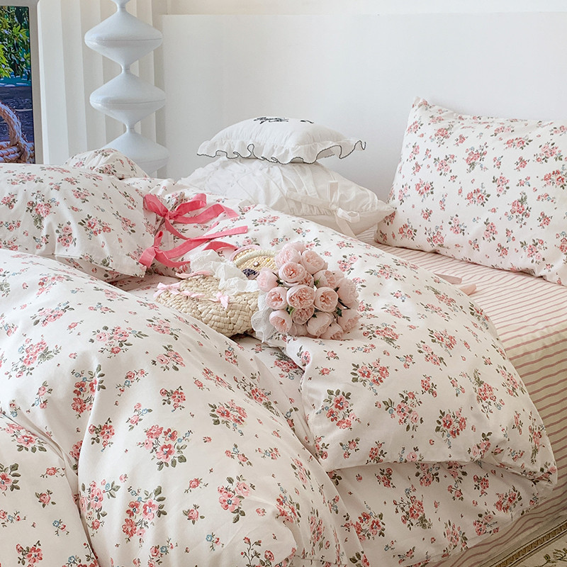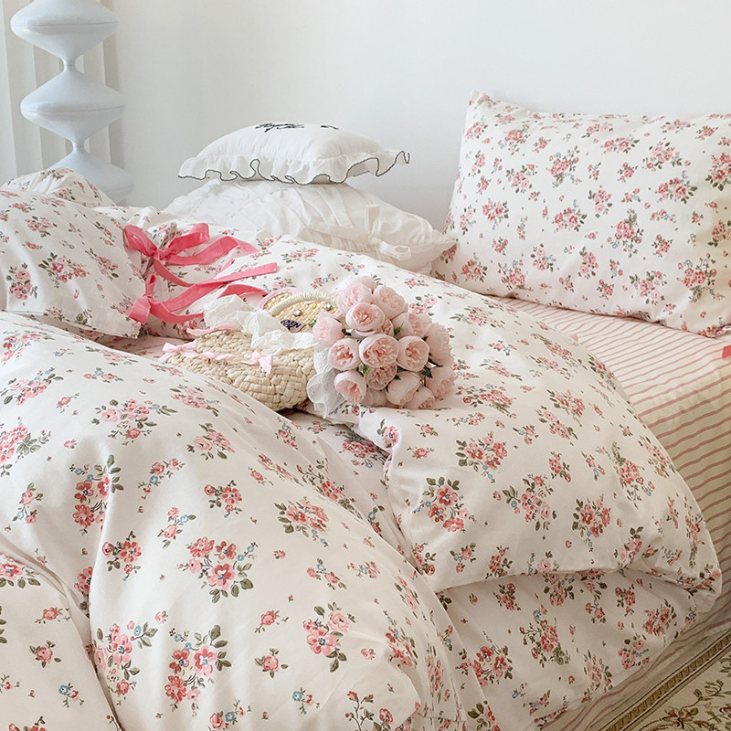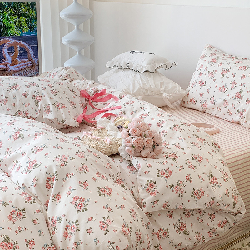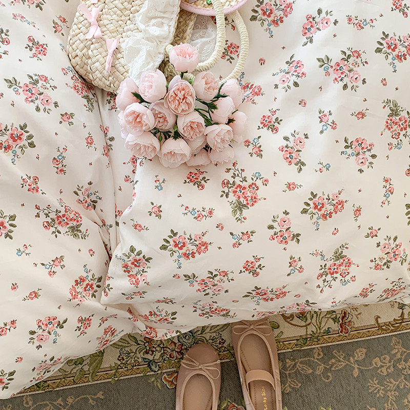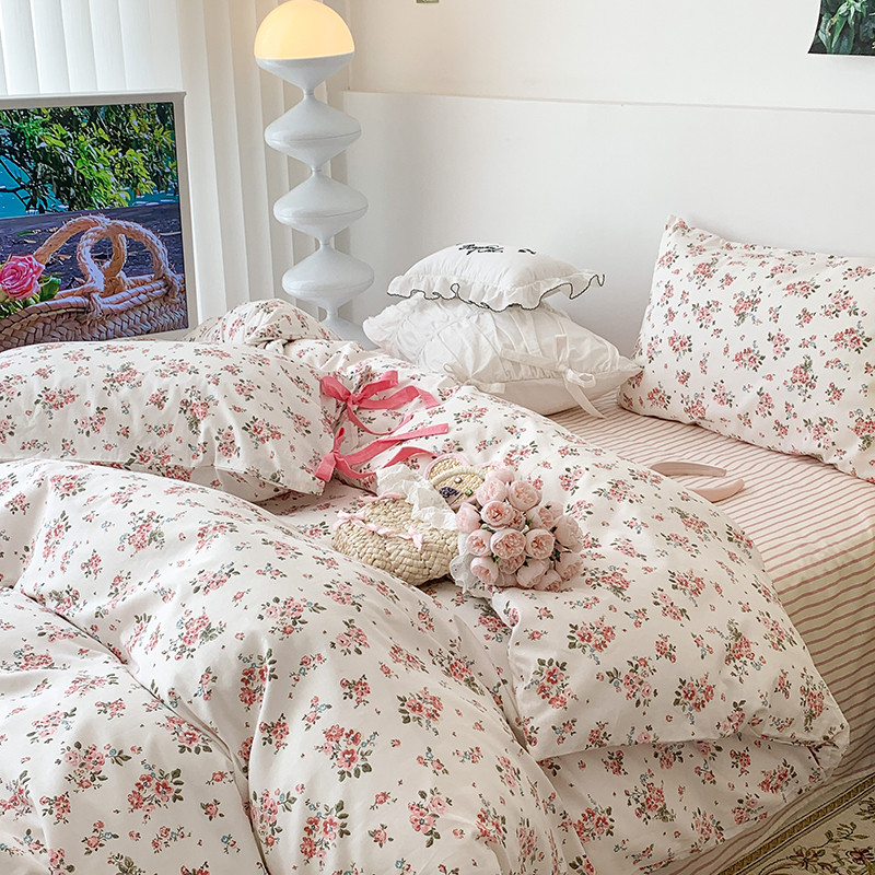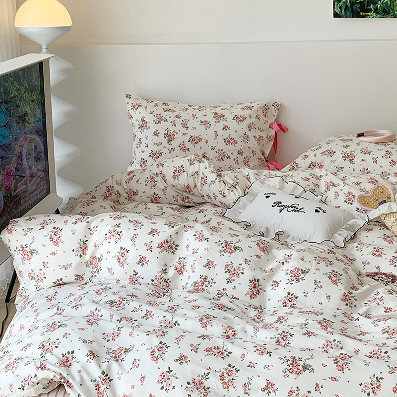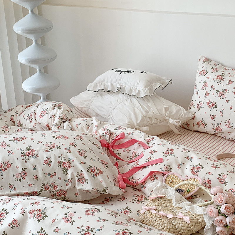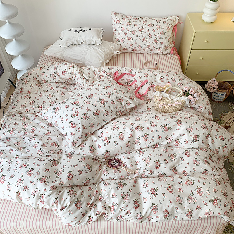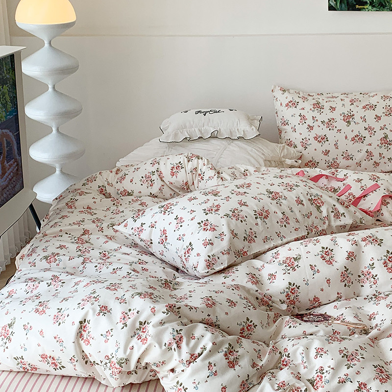 昔可家纺 2023新款全棉蝴蝶结枕套普通款四件套 樱花信子