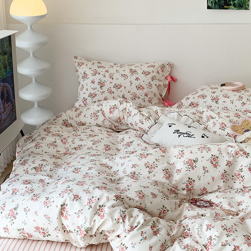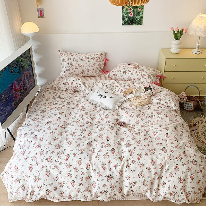 商品名称:昔可家纺 2023新款全棉蝴蝶结枕套普通款四件套 樱花信子
