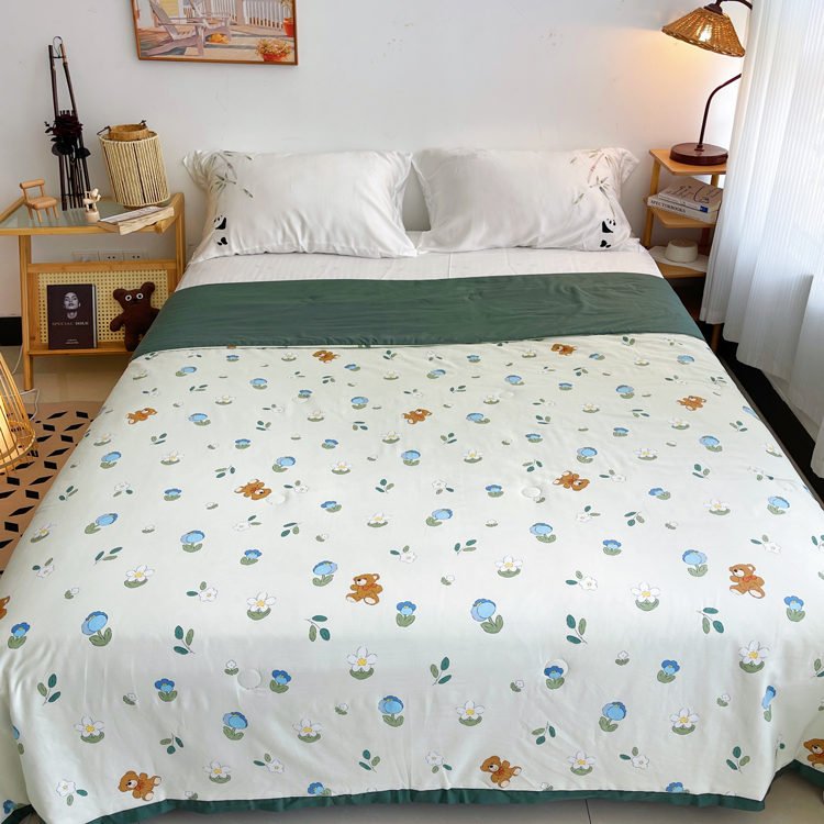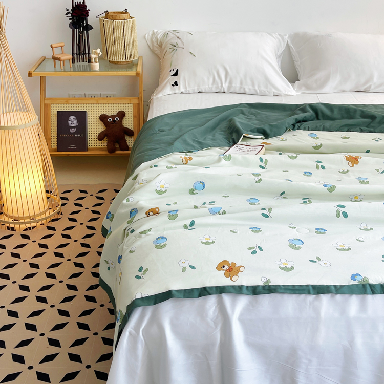蓝庭云小棉天丝棉凉感小清新夏凉被卡通可机洗亲肤空调被双人被 翠果果,翠果果
