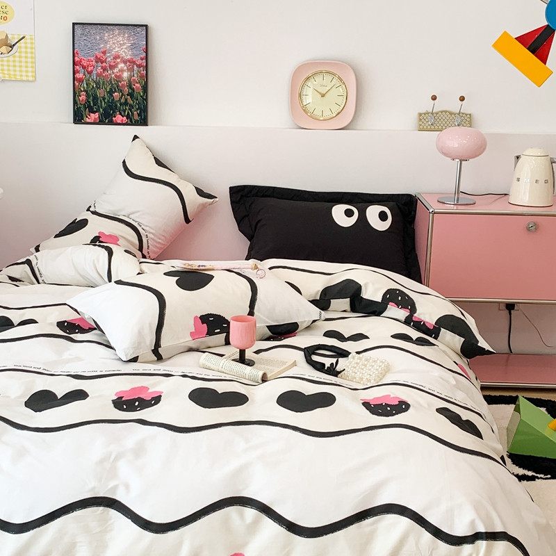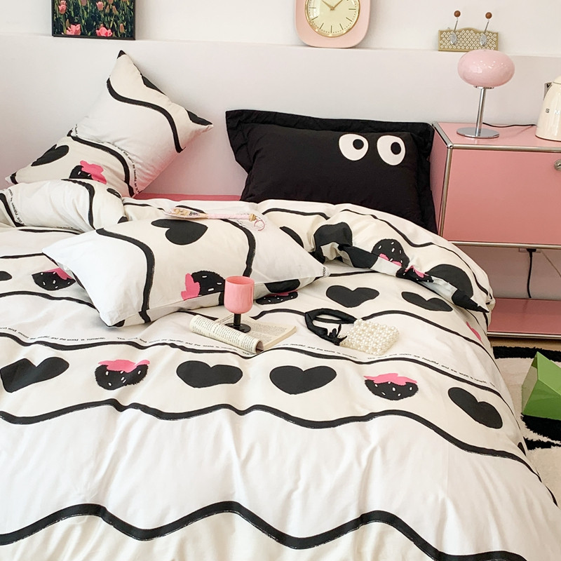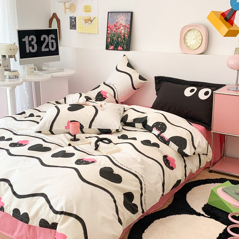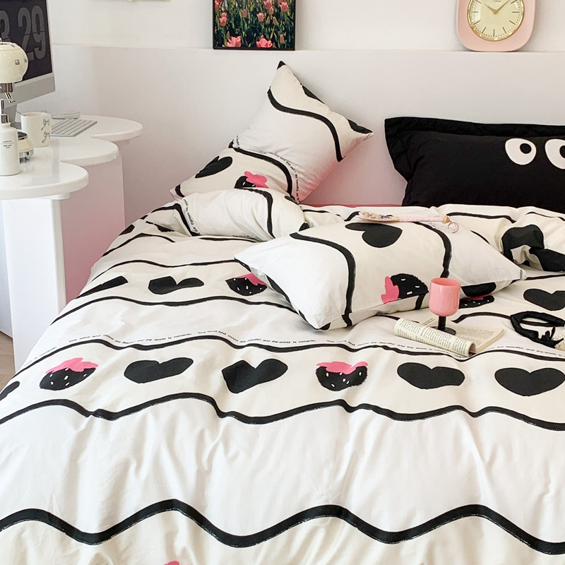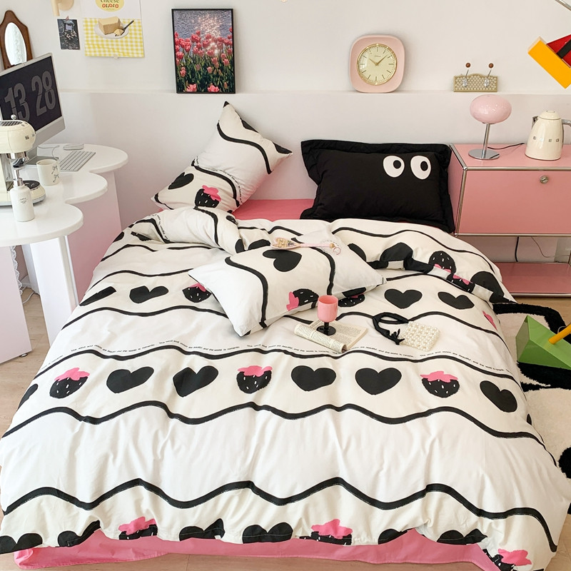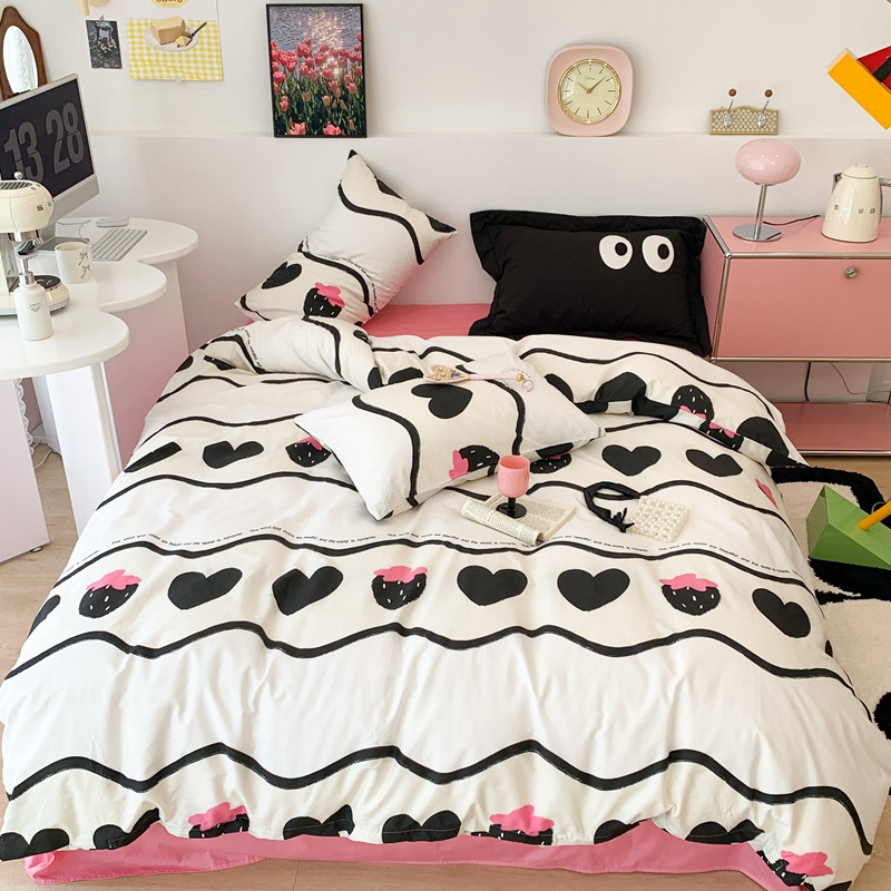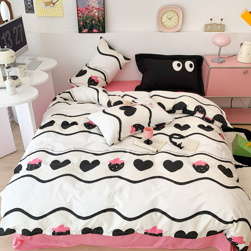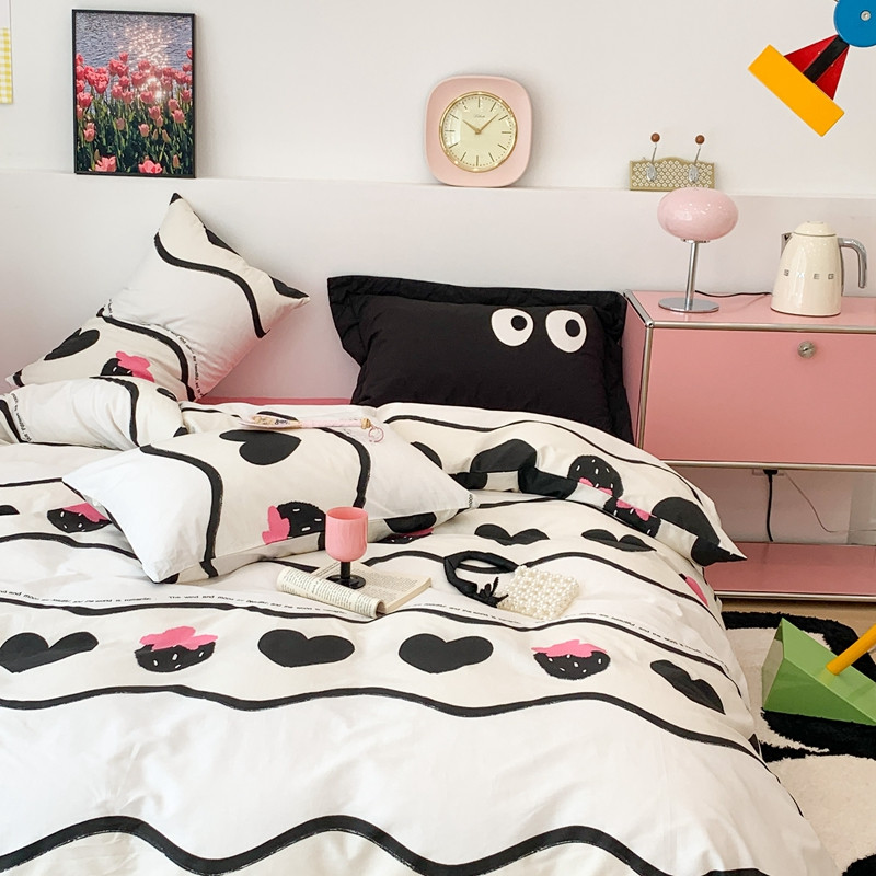 商品名称:昔可 2023新款全棉四件套 黑爱心草莓