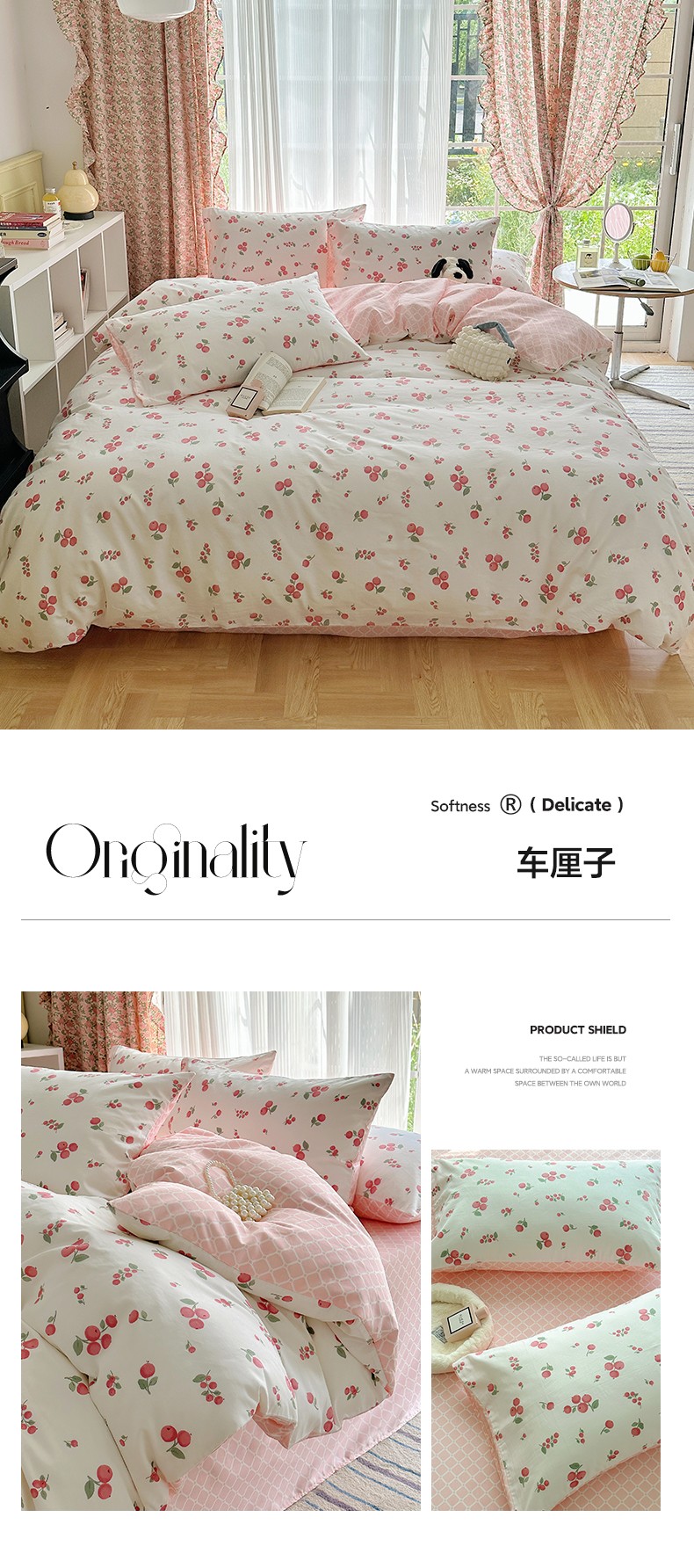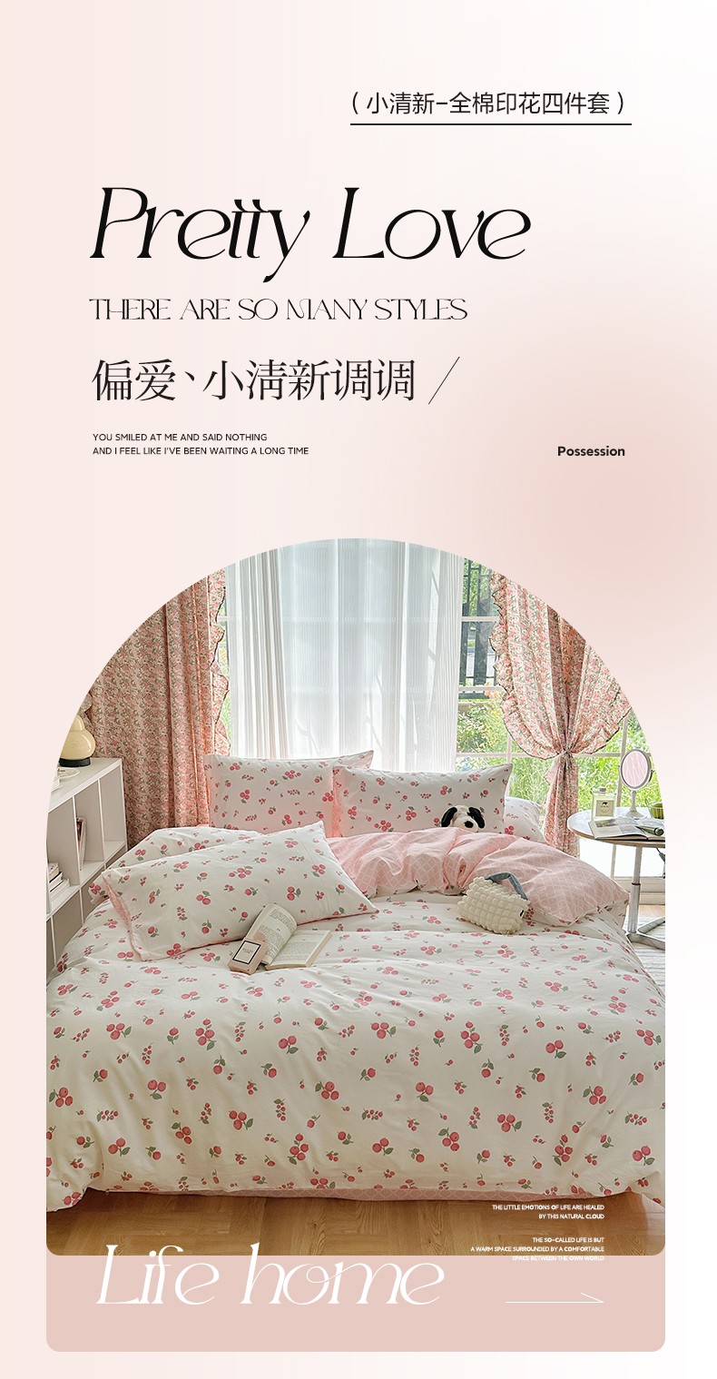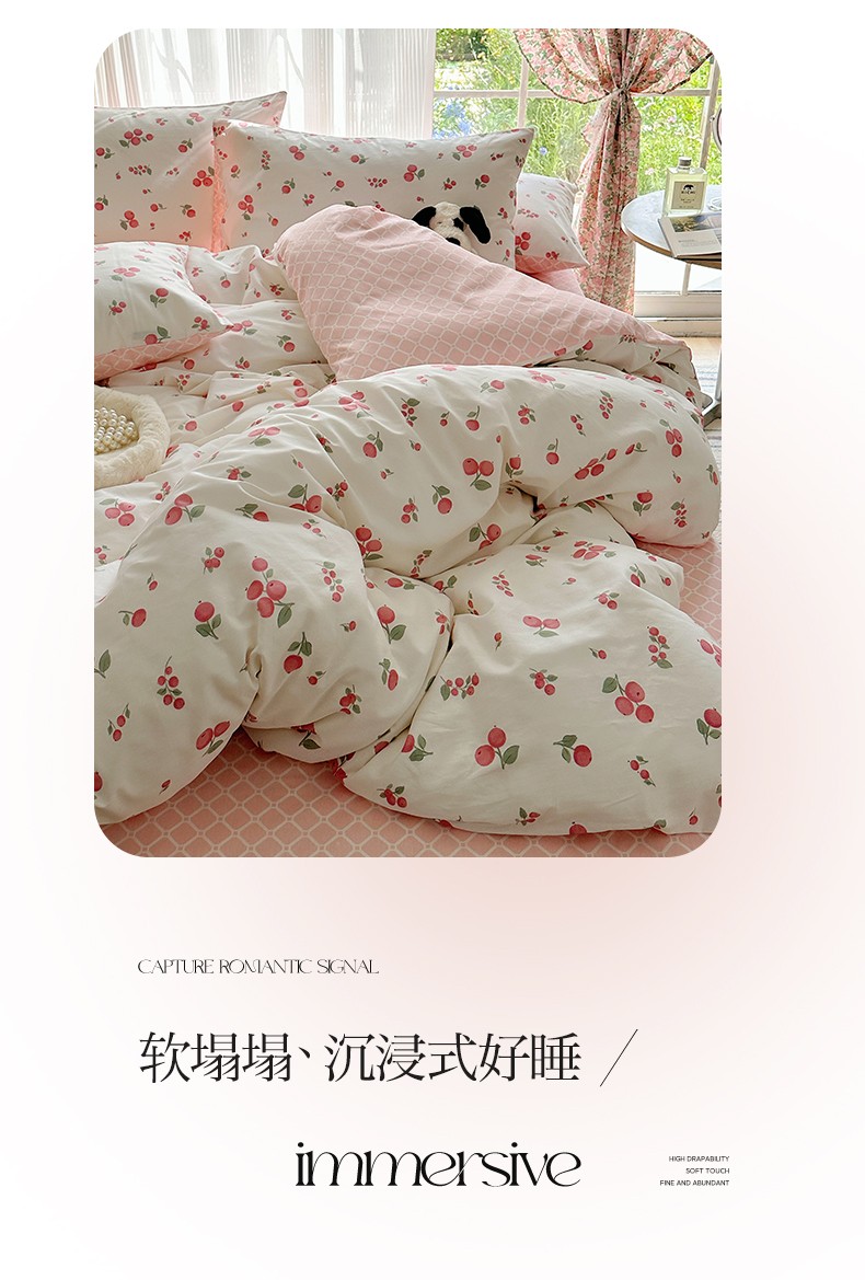 雅居纺 2023新款13070全棉印花四件套 车厘子