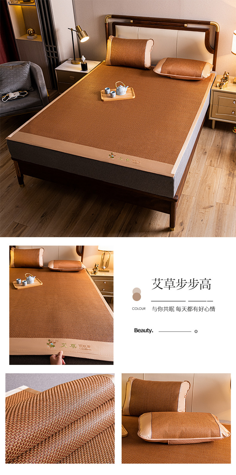 (总)席佬大 2025新款香薰艾草冰藤席凉席,北欧风,红叶绿,花朵-香槟,花开绿,花开玉,杏叶香槟