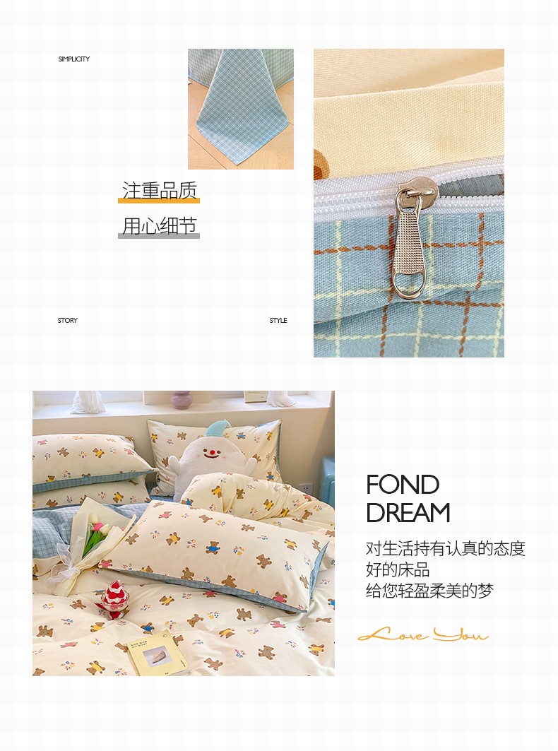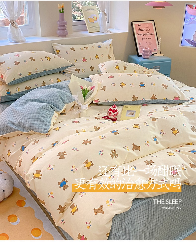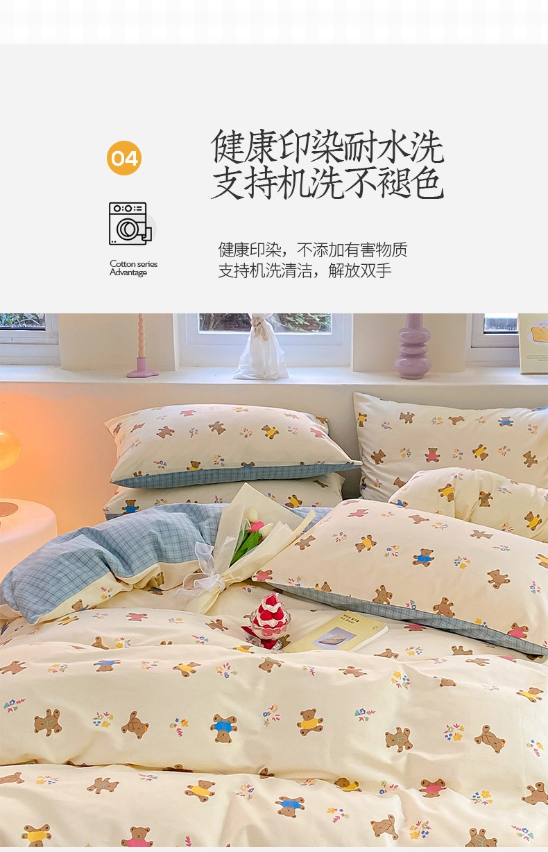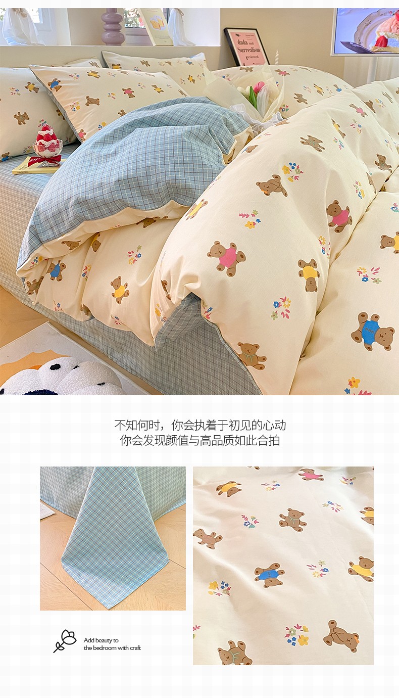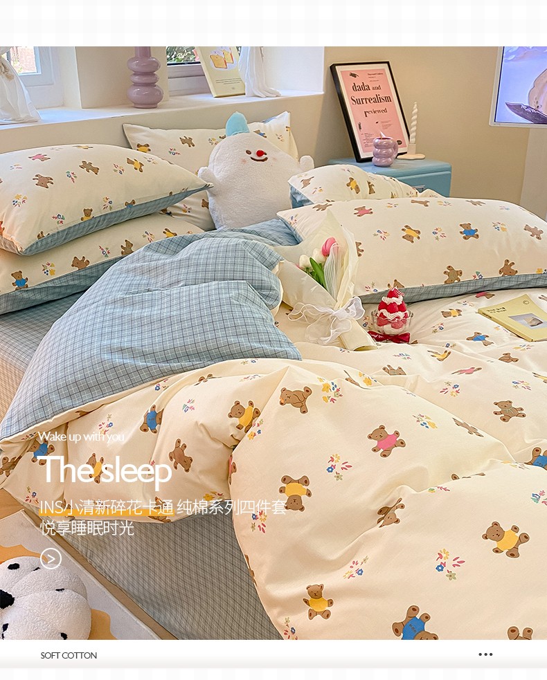 商品名称:桃子 2023新款ins小清新碎花卡通纯棉系列四件套 棉-饼干熊