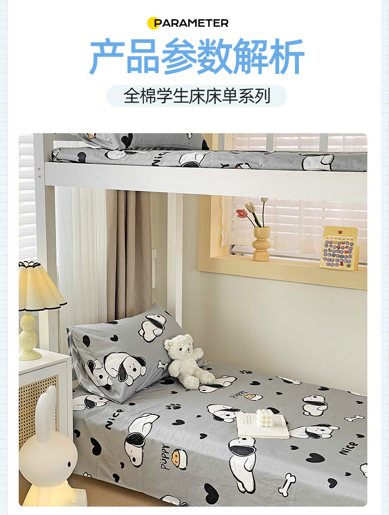 • 91家纺网 家纺一手货源 找家纺 名兮 2023新款全棉学生上下铺床单 可爱萌宠