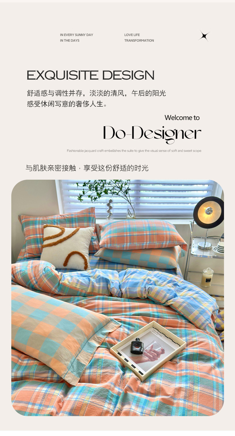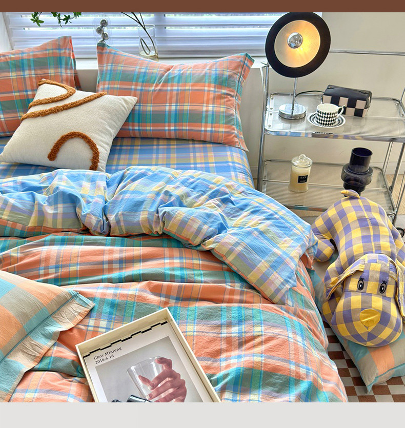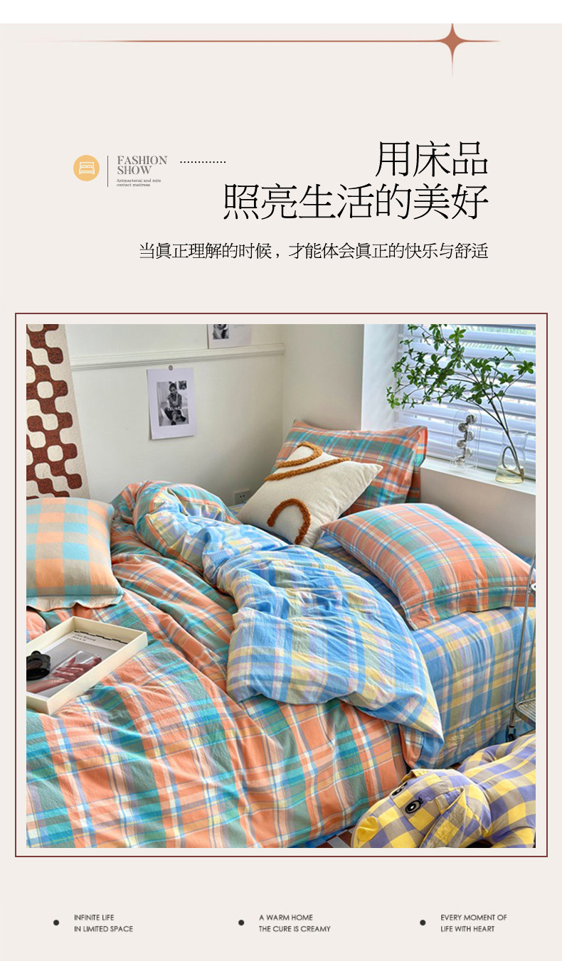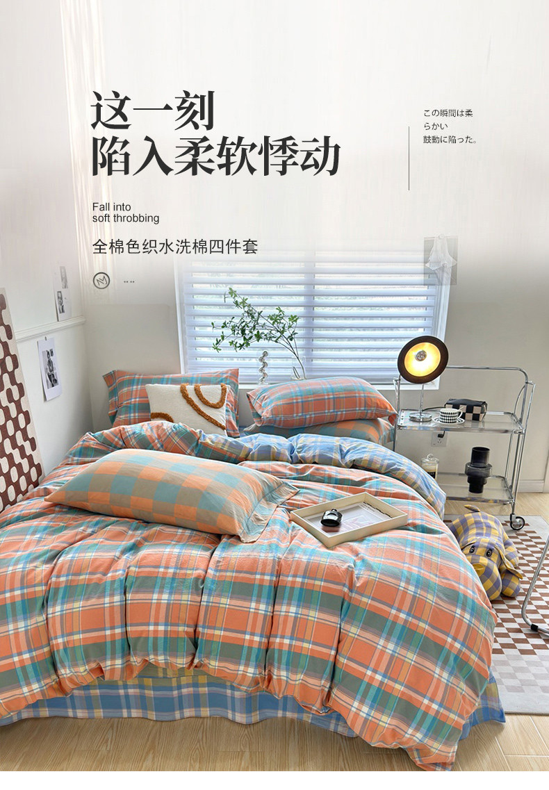 当前位置: 91家纺网 > 商品网购 > 床品套件 > 四件套 > 全棉普通四件套 > 三沁 2023新款直播纯棉四件套全棉色织水洗棉床单式格子简约被罩花影