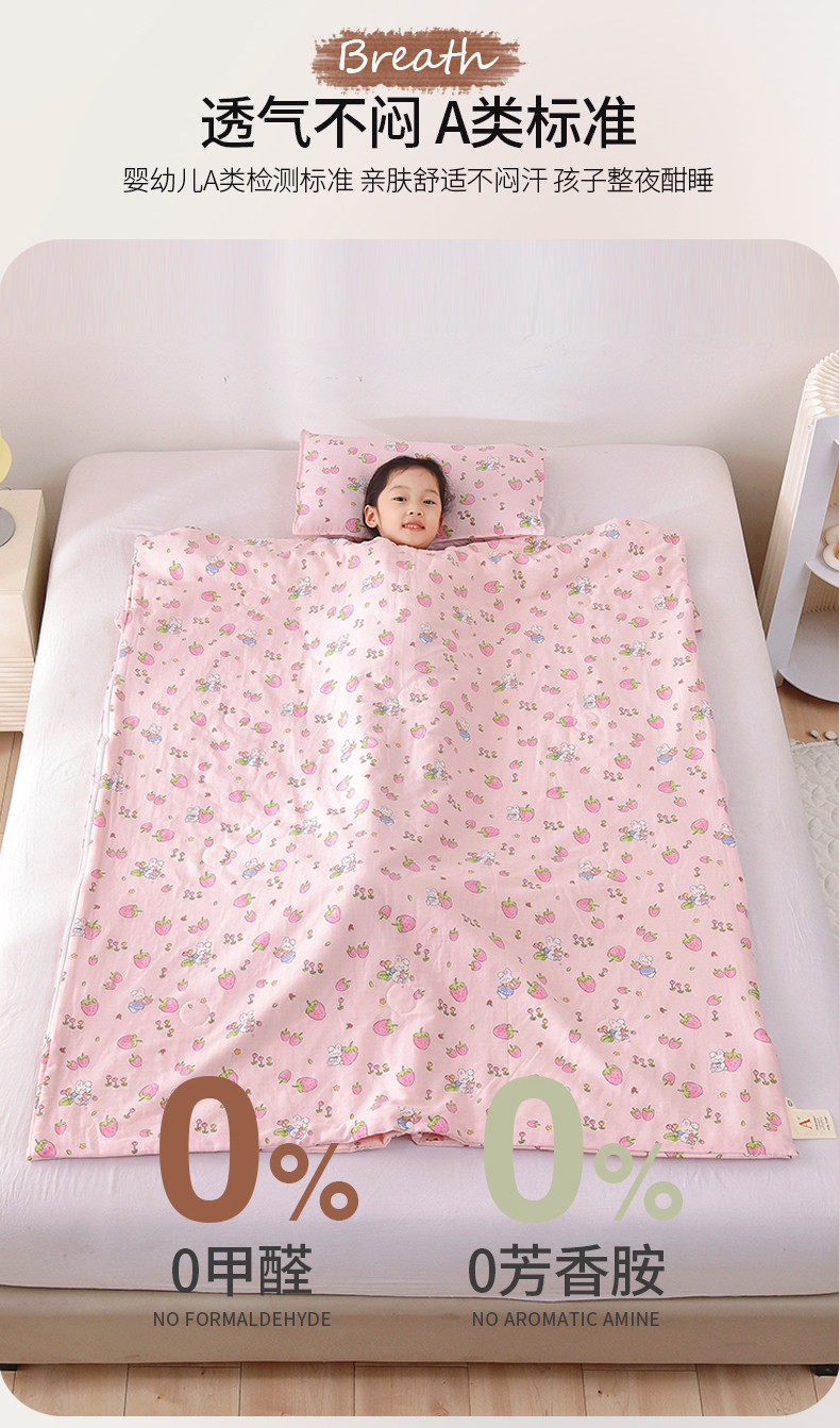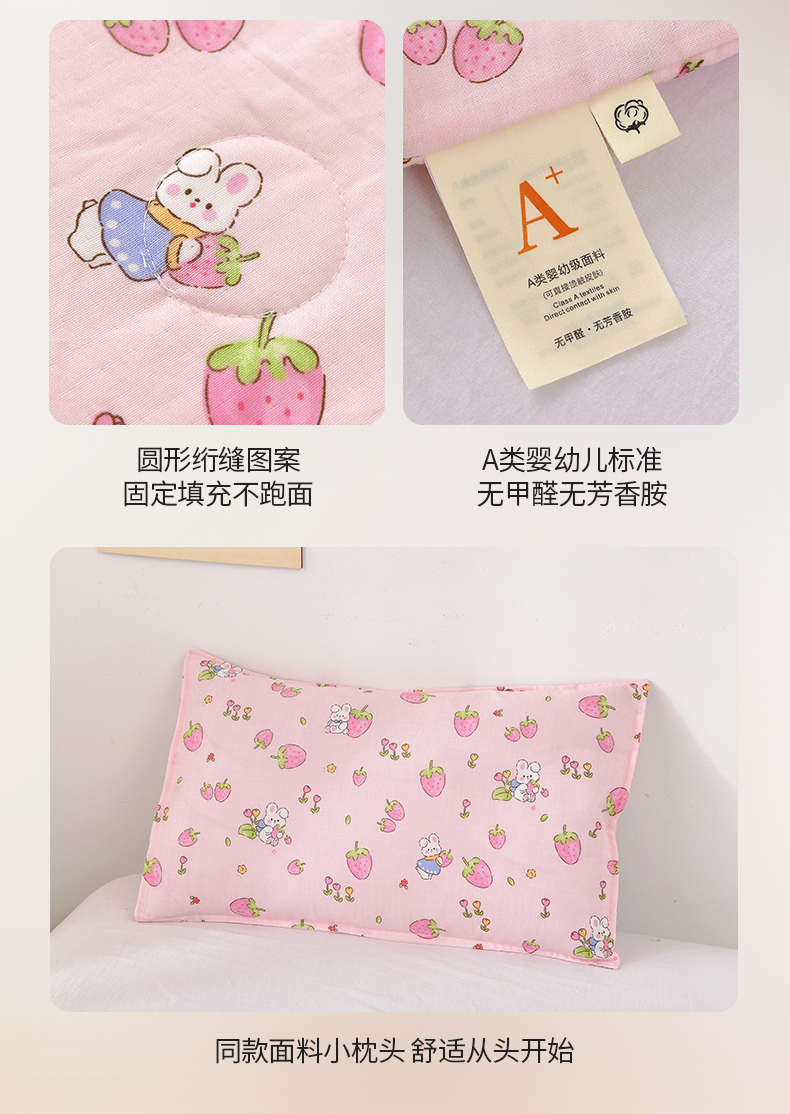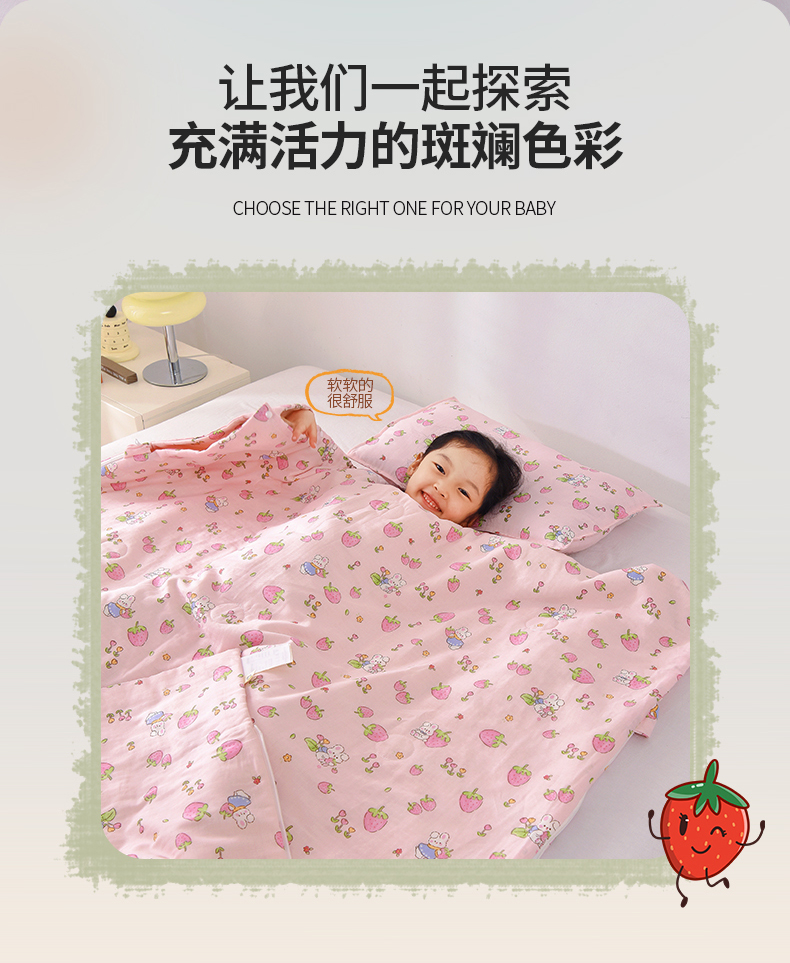 2025年新款幼儿园全棉被子三件套宝宝入园纯棉六件套被褥午睡被套草莓甜心,草莓甜心