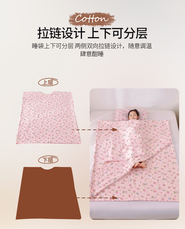 商品名称:A类夏季纯棉睡袋双层纱棉花薄款春秋宝宝中大童儿童防踢被神器 草莓小兔