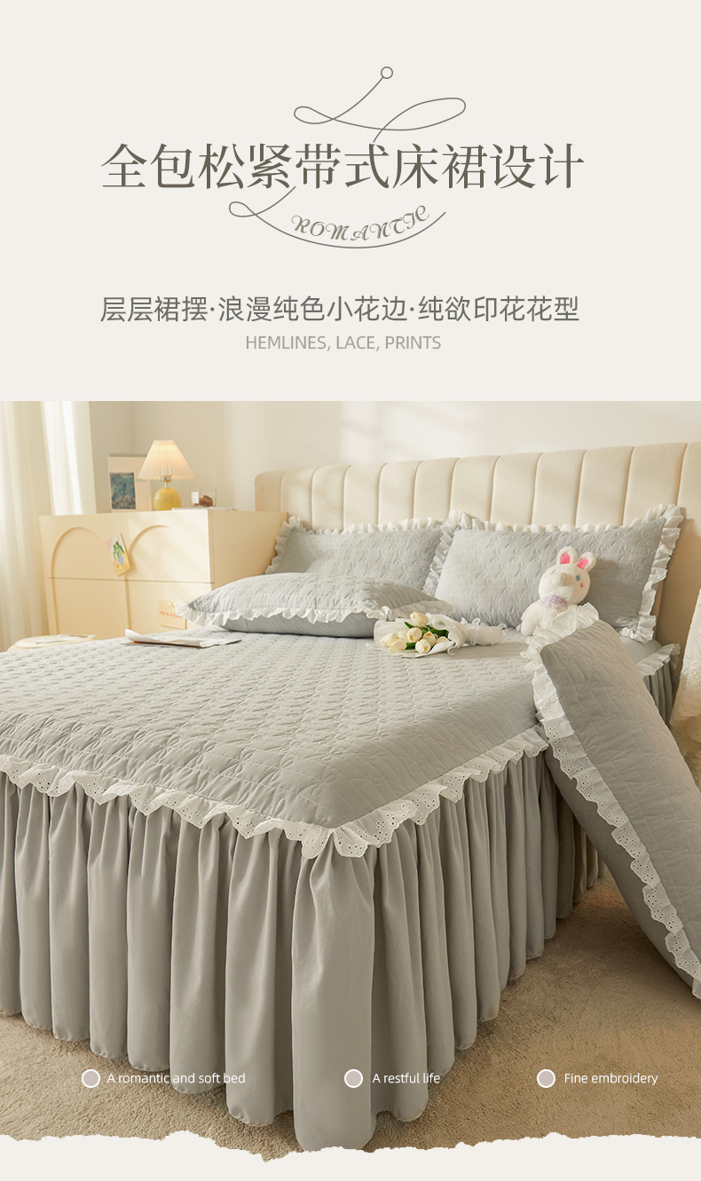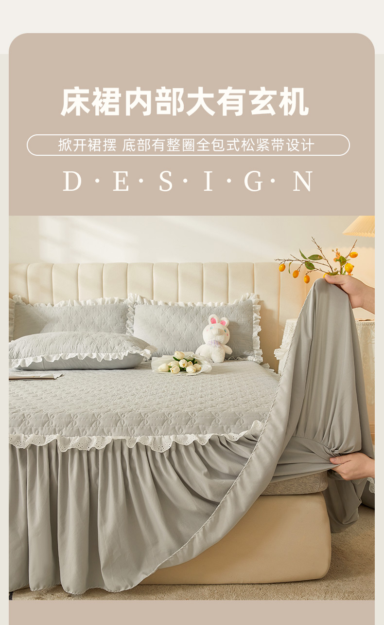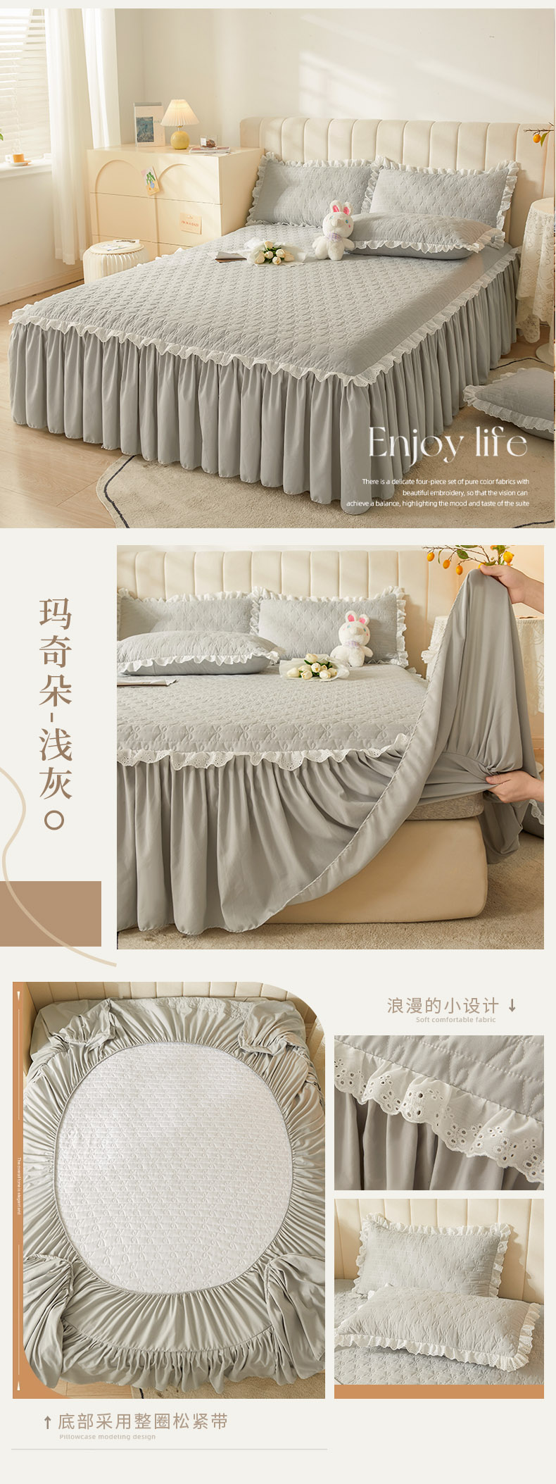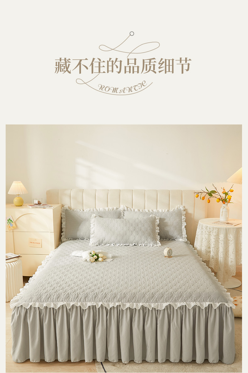 商品名称:恋尚 2023新款玛奇朵系列蜜桃棉夹棉床笠式单床裙 玛奇朵-浅灰