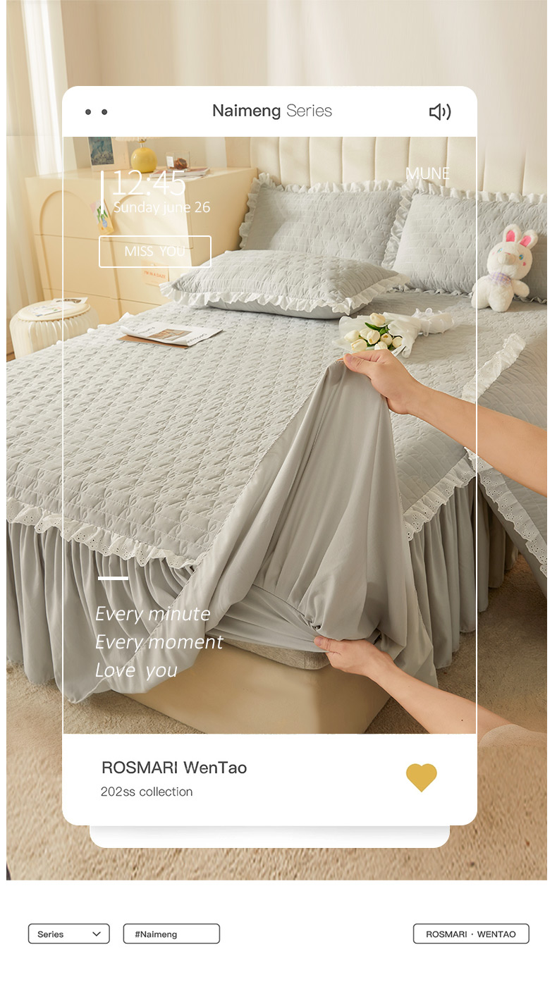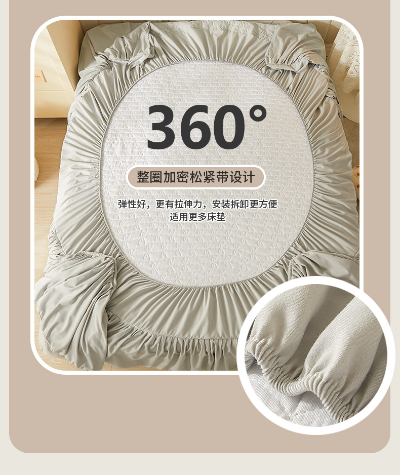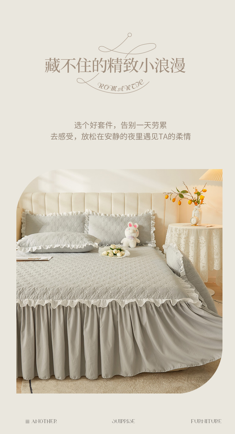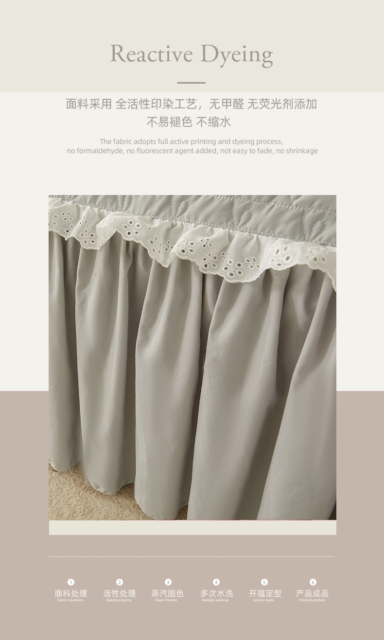 商品名称:恋尚 2023新款玛奇朵系列蜜桃棉夹棉床笠式单床裙 玛奇朵-浅灰