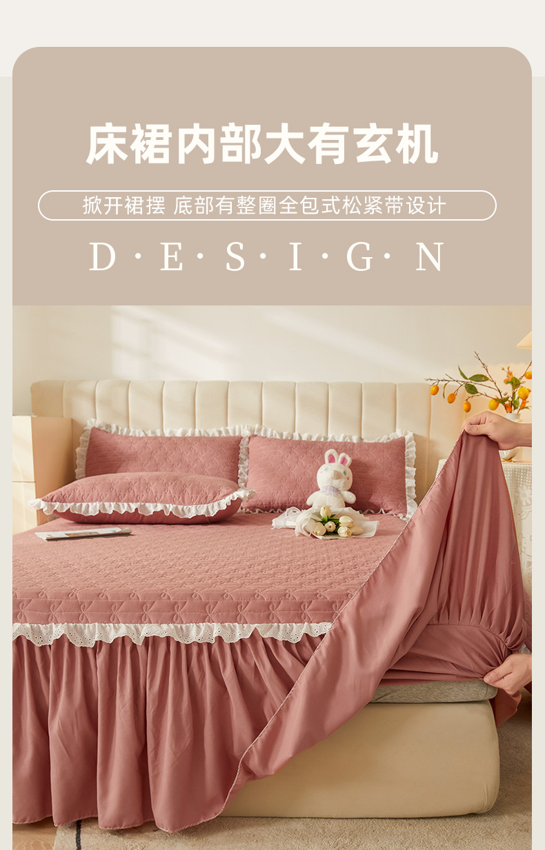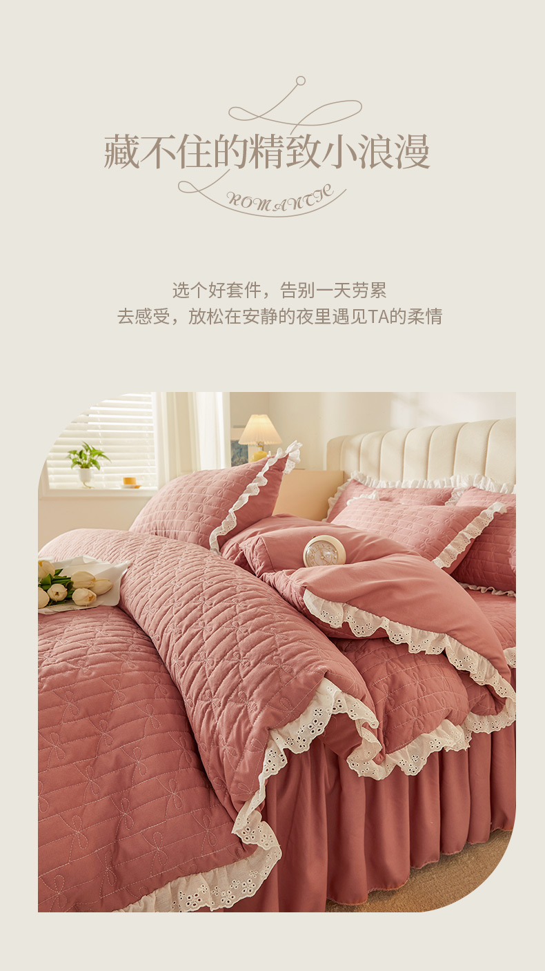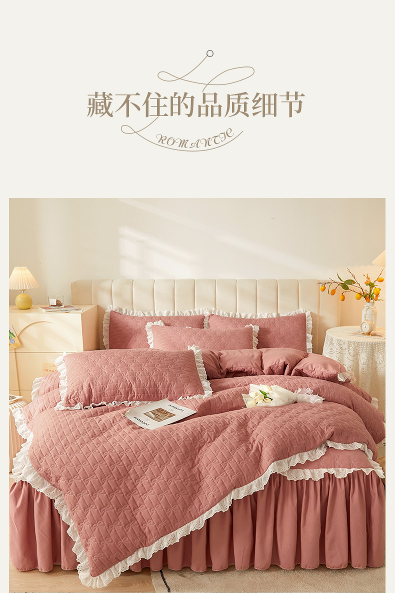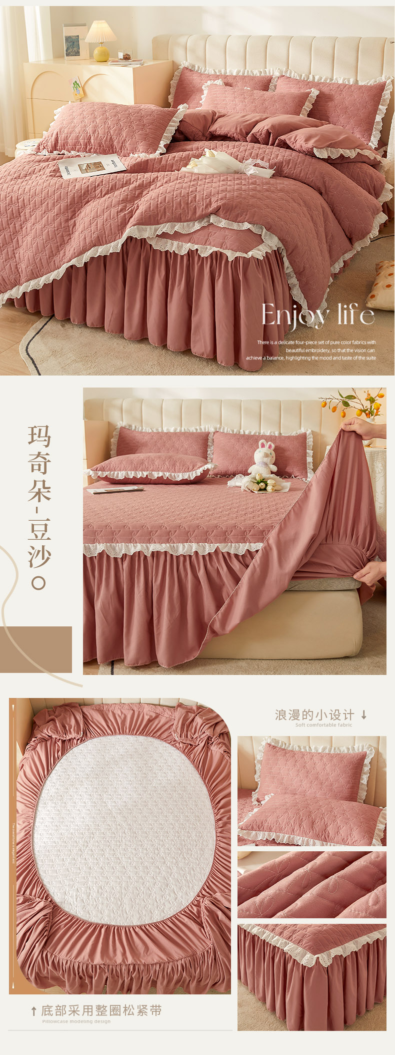 当前位置: 91家纺网 > 商品网购 > 床品套件 > 四件套 > 全棉普通四件套 > 恋尚 2023新款玛奇朵系列蜜桃棉夹棉床笠式床裙四件套 玛奇朵-豆沙