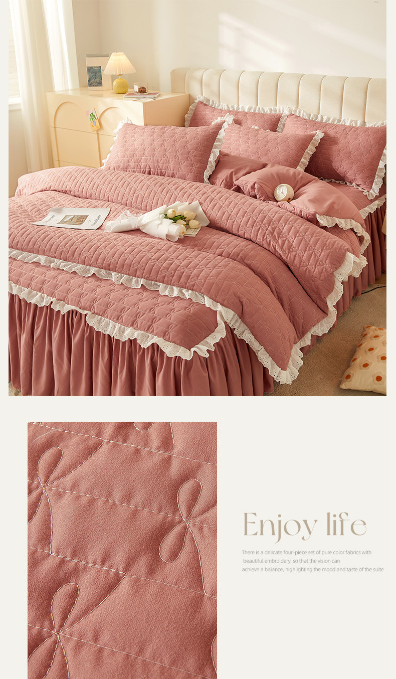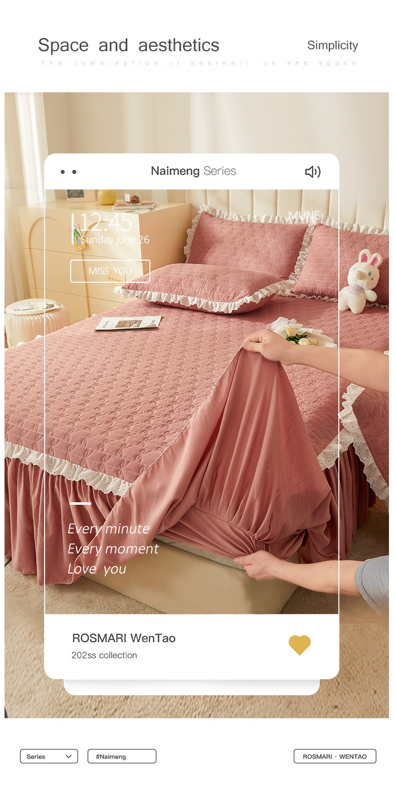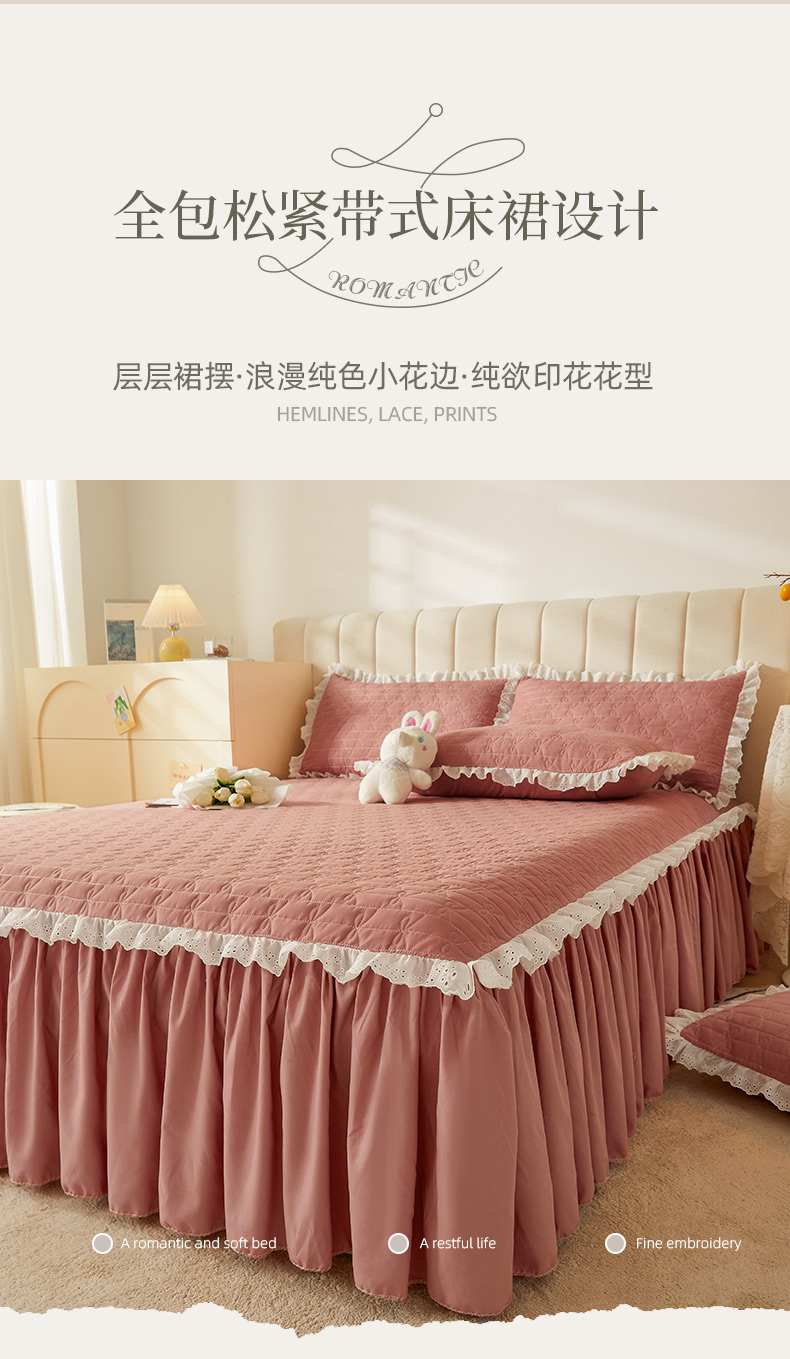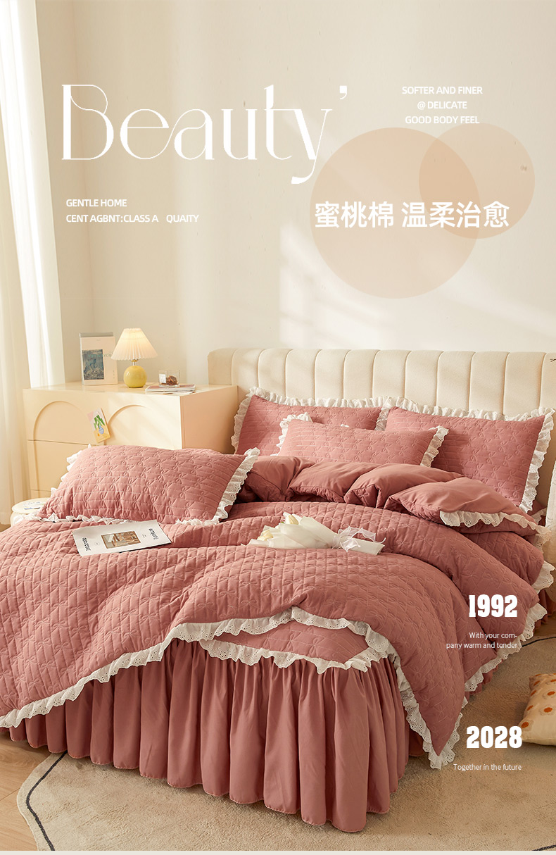 当前位置: 91家纺网 > 商品网购 > 床品套件 > 四件套 > 全棉普通四件套 > 恋尚 2023新款玛奇朵系列蜜桃棉夹棉床笠式床裙四件套 玛奇朵-豆沙