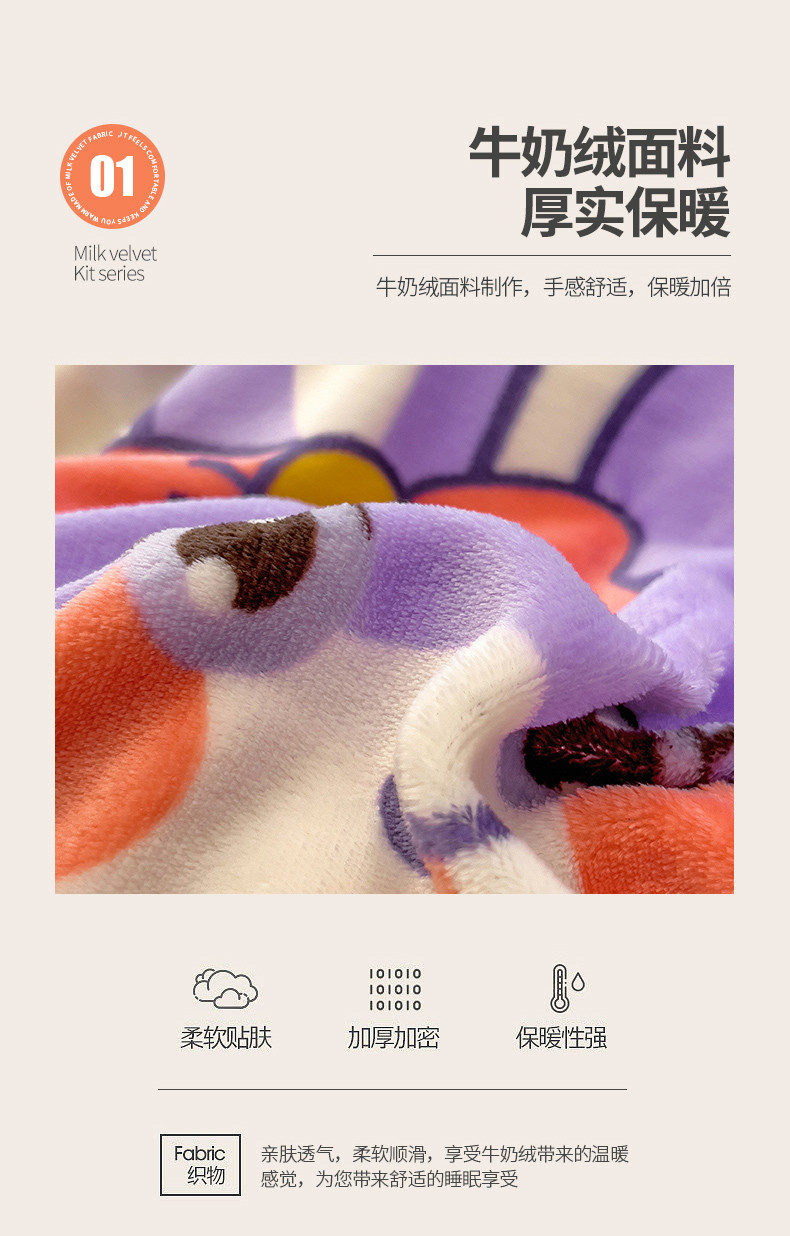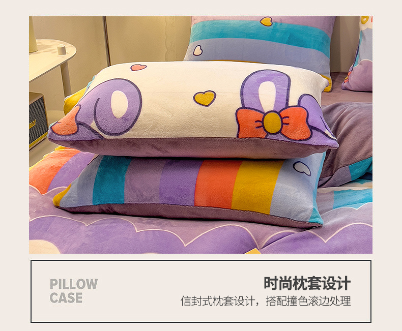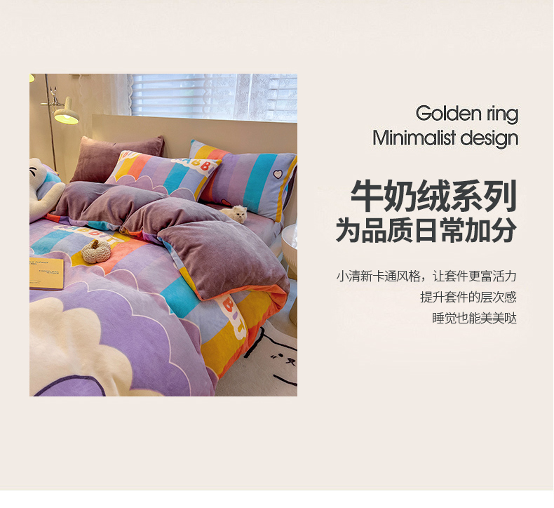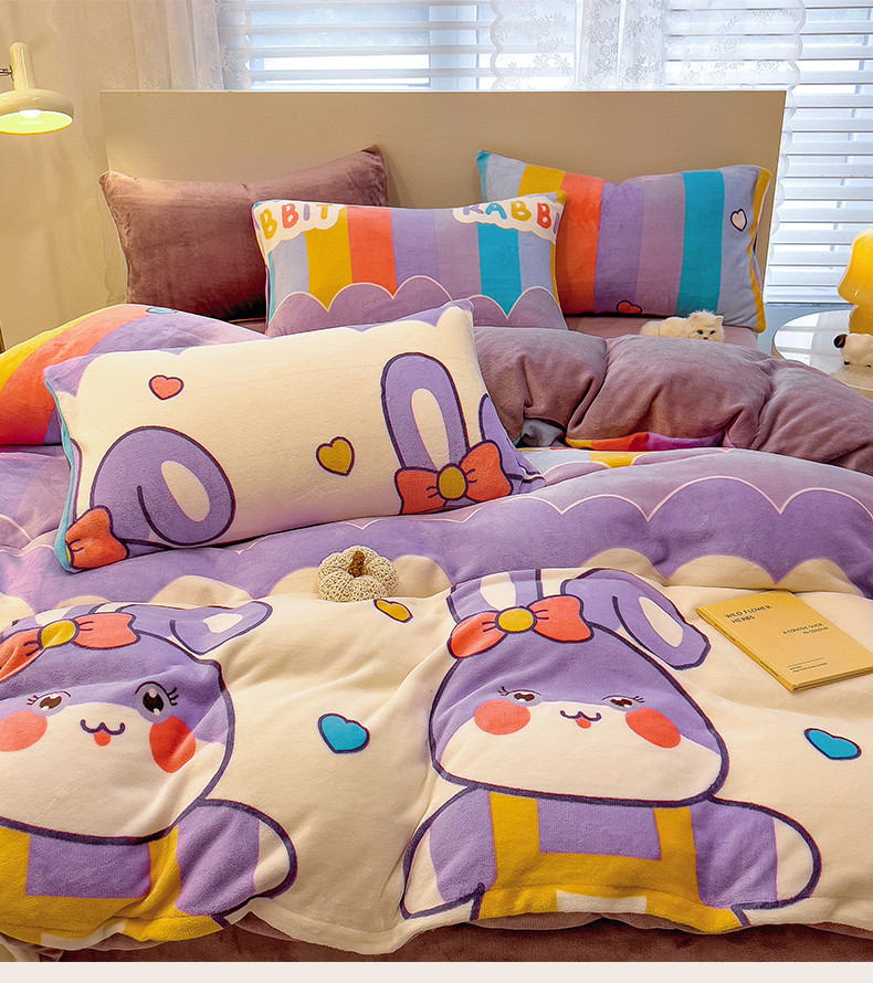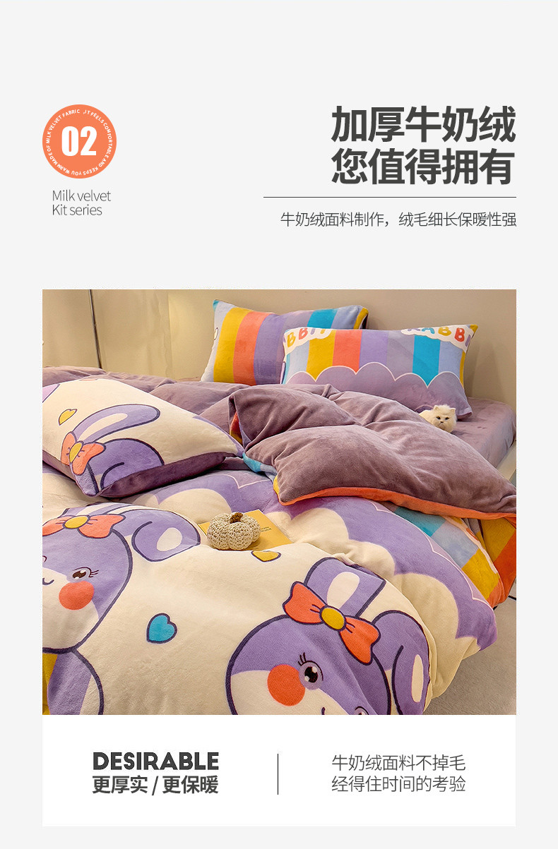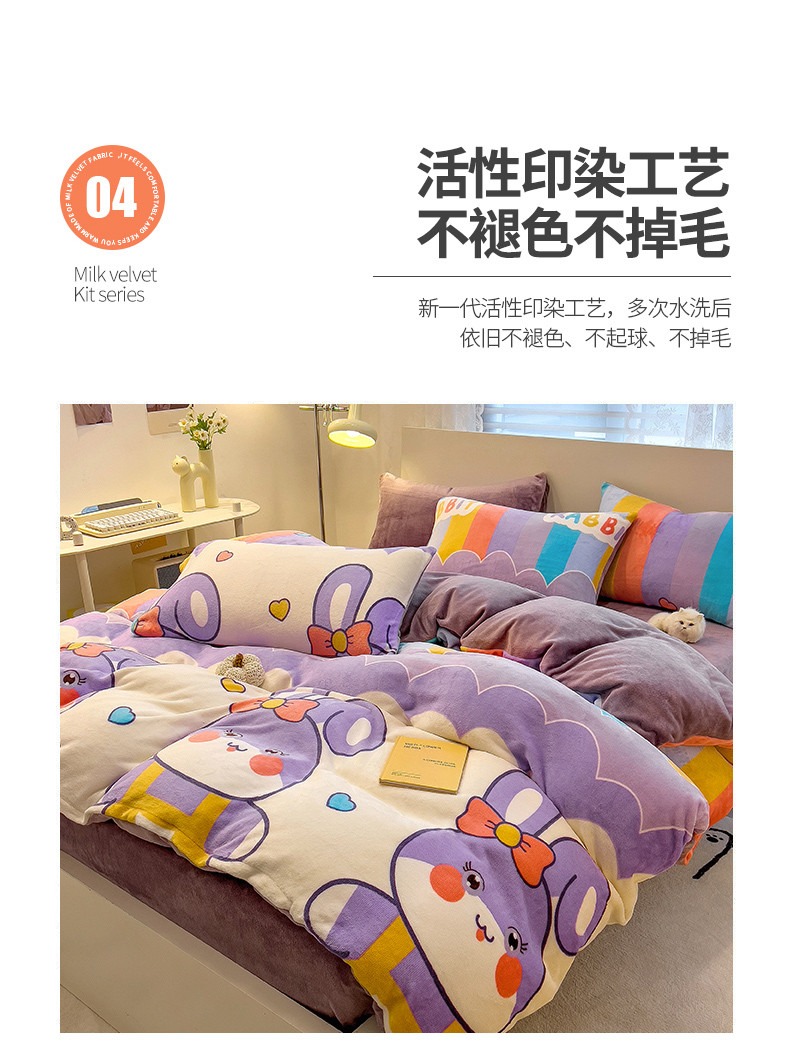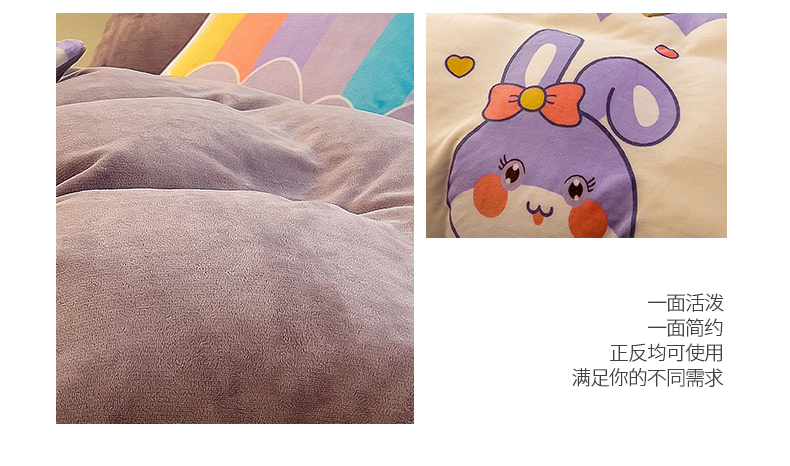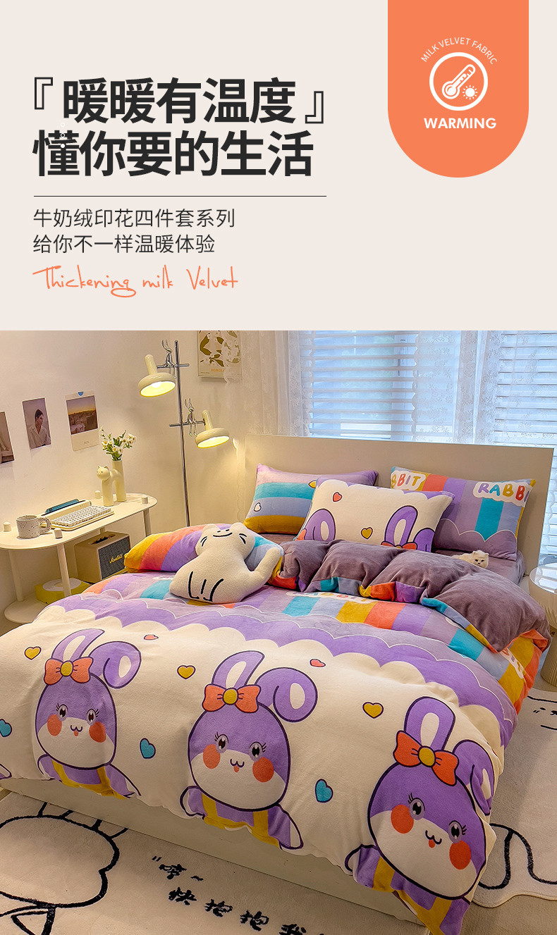 商品名称:芃成 2023新款双面牛奶绒印花四件套 可爱兔