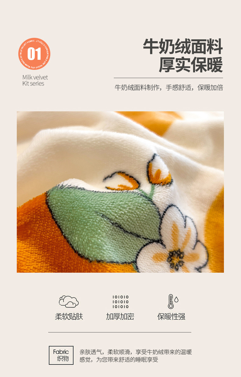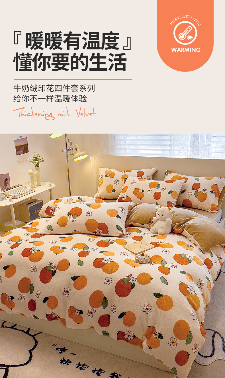 商品名称:芃成 2023新款双面牛奶绒印花四件套 心想事橙