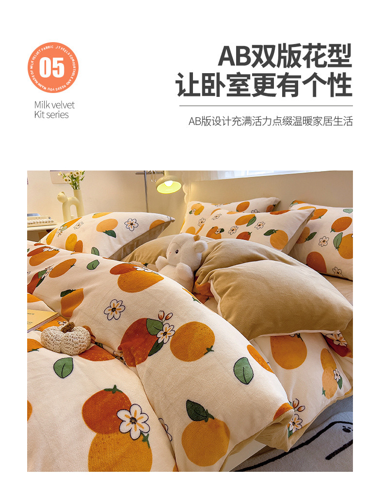 芃成 2023新款双面牛奶绒印花四件套 心想事橙