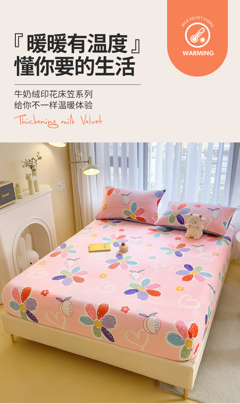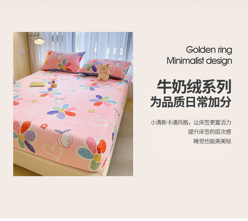 • 91家纺网 家纺一手货源 找家纺 芃成家纺 2023新款牛奶绒印花床笠 初恋小事