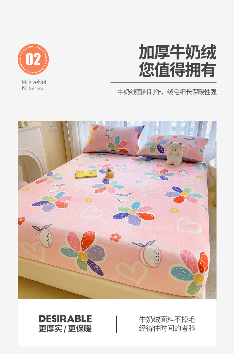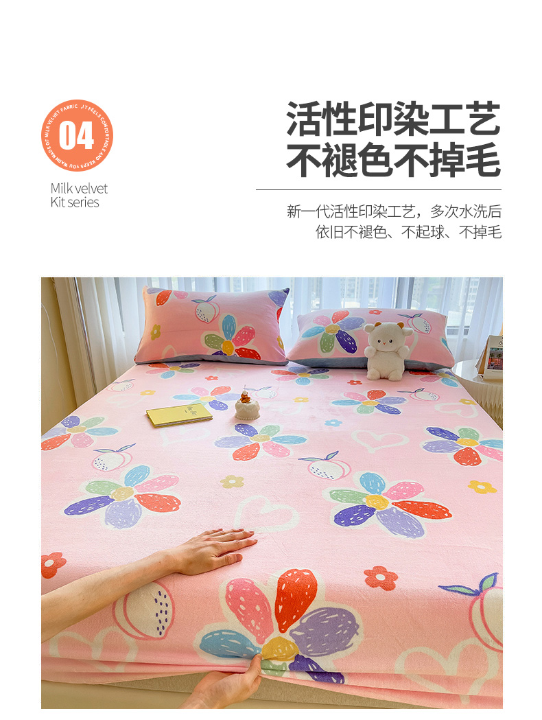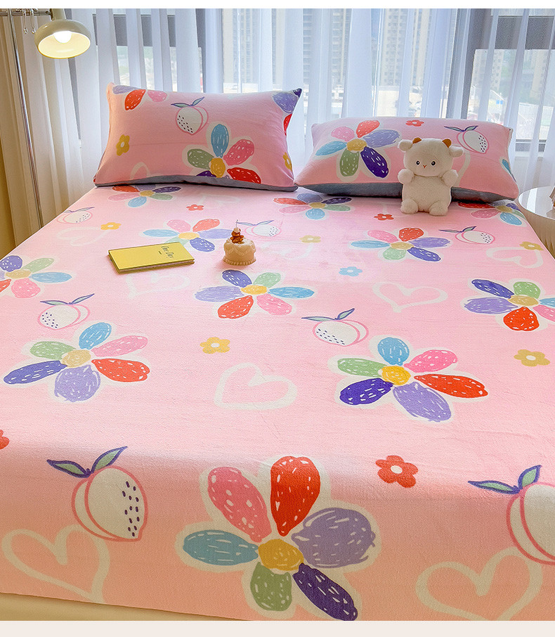 芃成家纺 2023新款牛奶绒印花床笠 初恋小事
