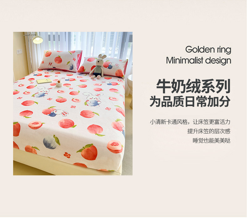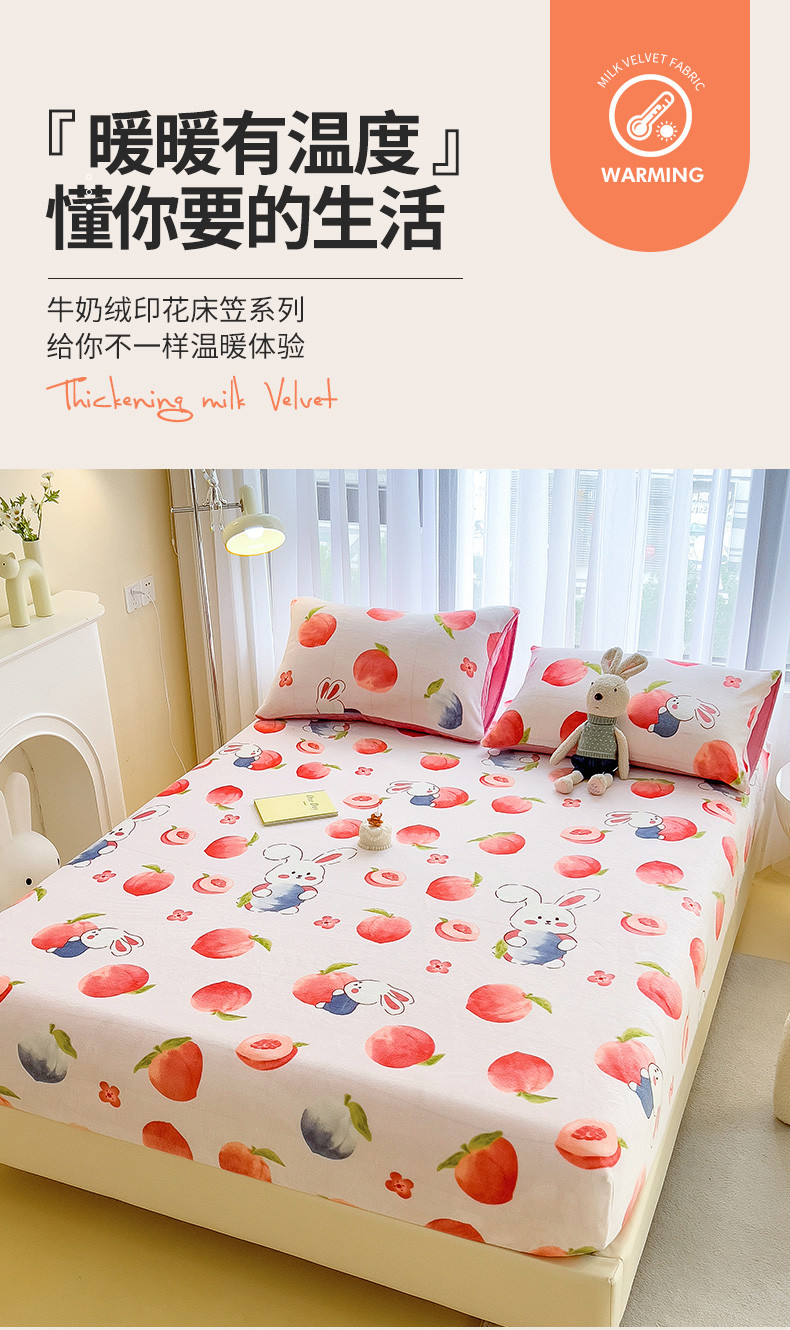 • 91家纺网 家纺一手货源 找家纺 芃成家纺 2023新款牛奶绒印花床笠 萌兔