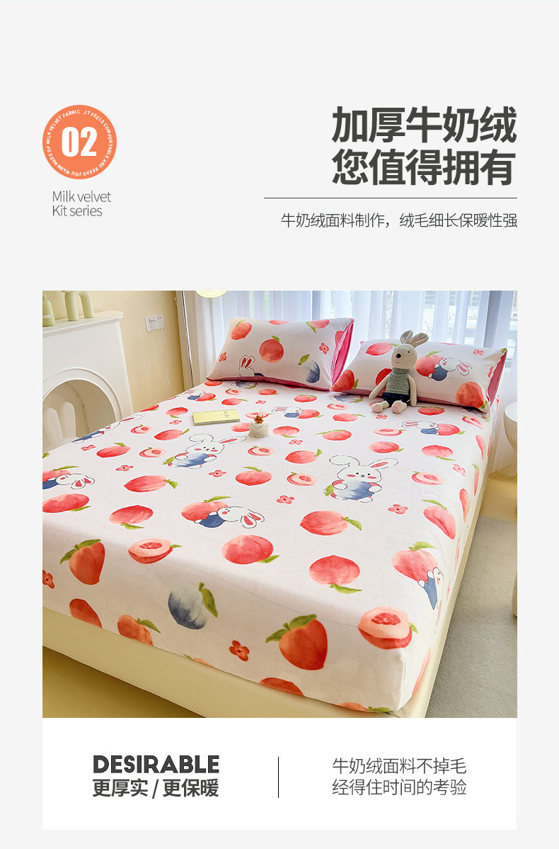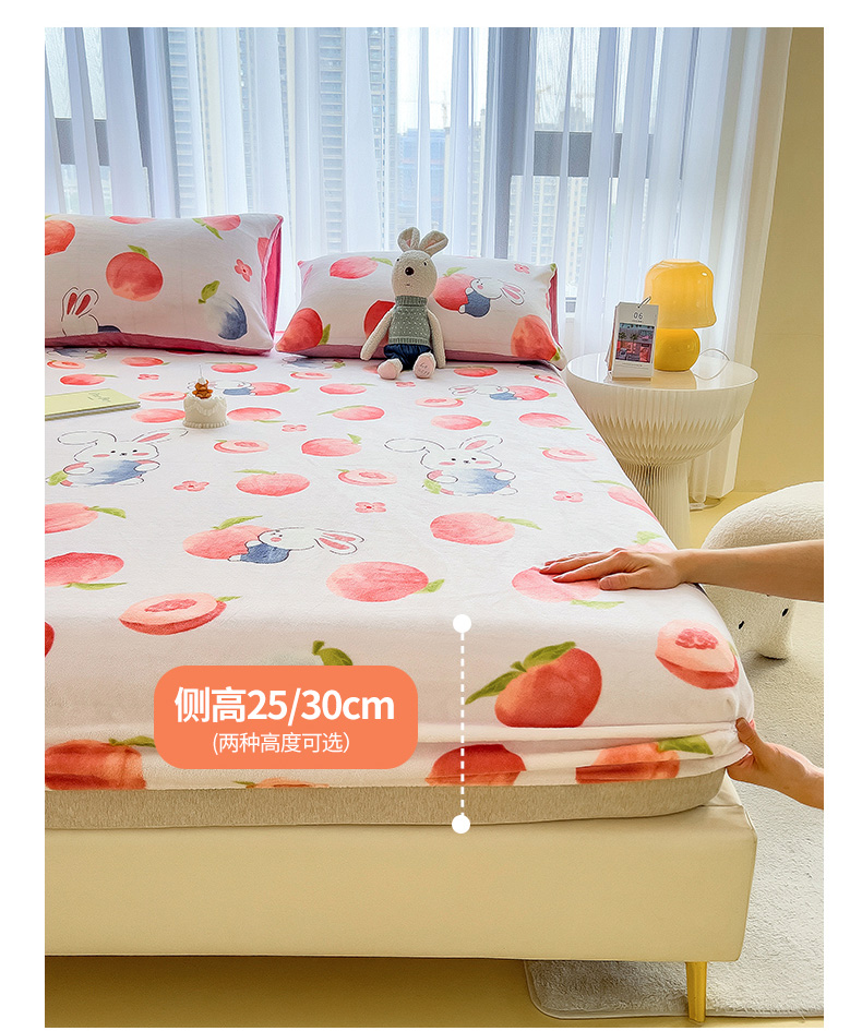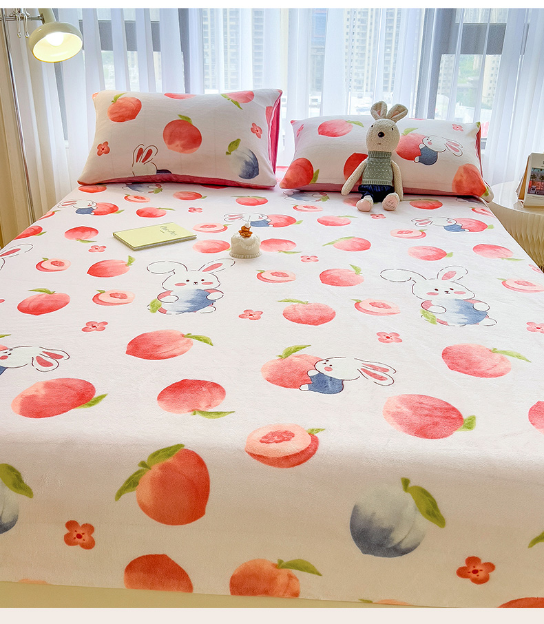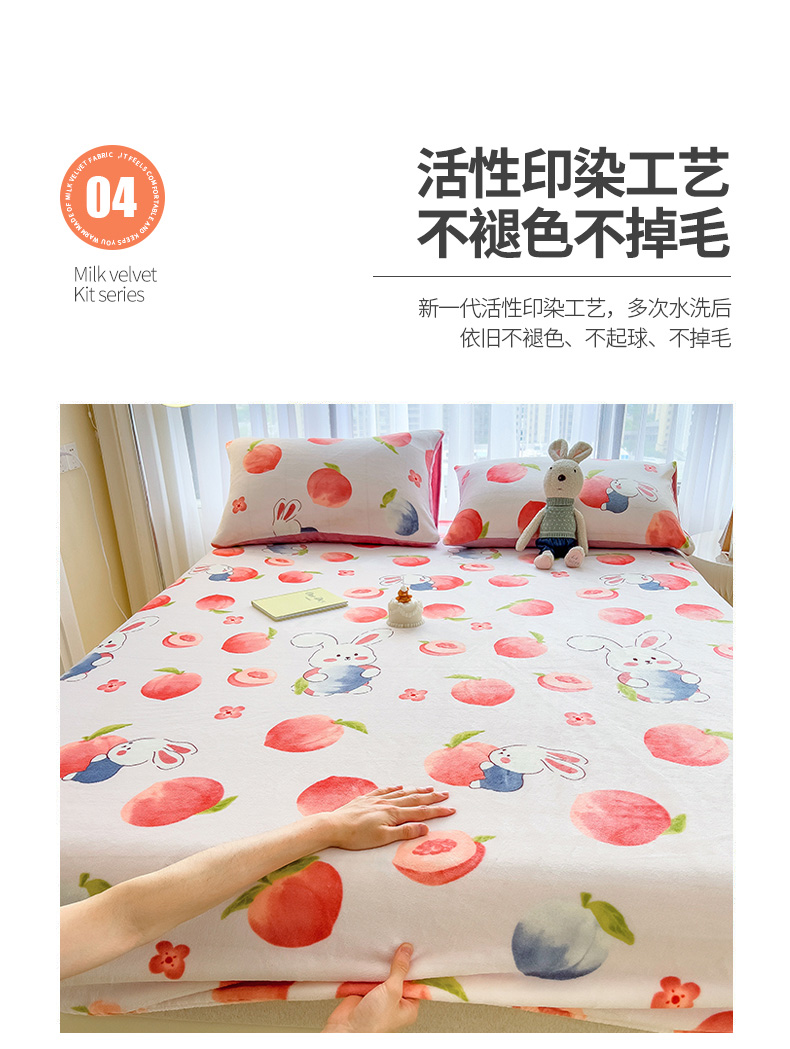 芃成家纺 2023新款牛奶绒印花床笠 萌兔