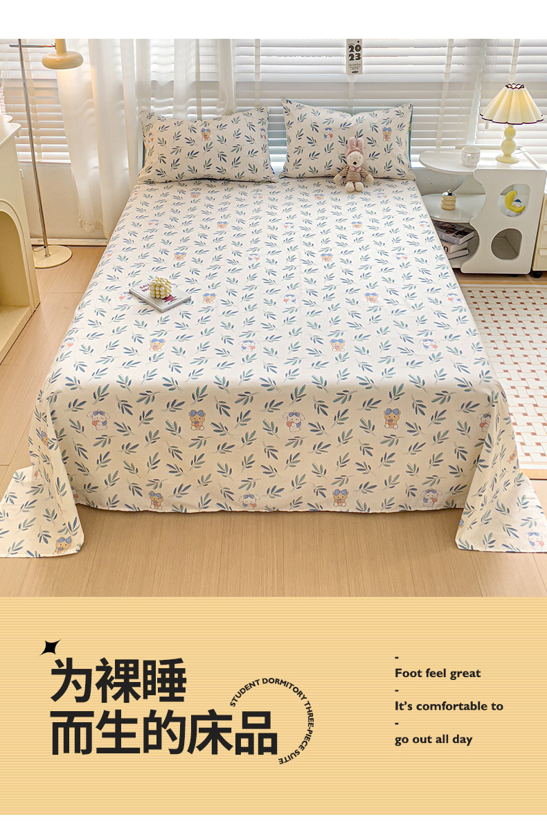 名兮 2023新款全棉床单 花花熊