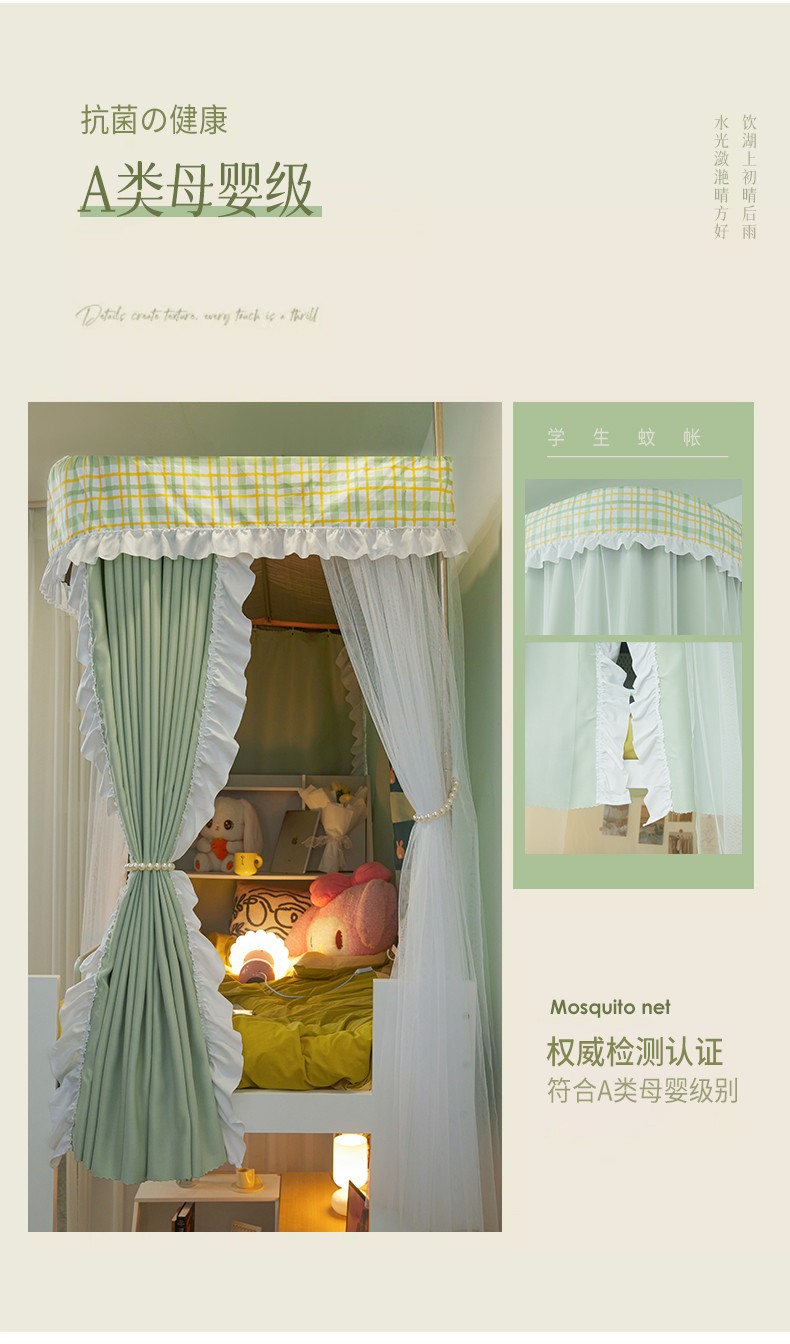当前位置: 91家纺网 > 商品网购 > 床上用品 > 蚊帐 > 卓尔居 2025新款学生高精密导轨花边款 导轨青柠绿