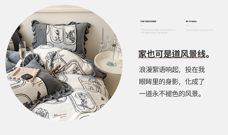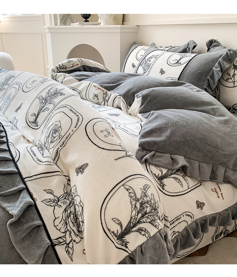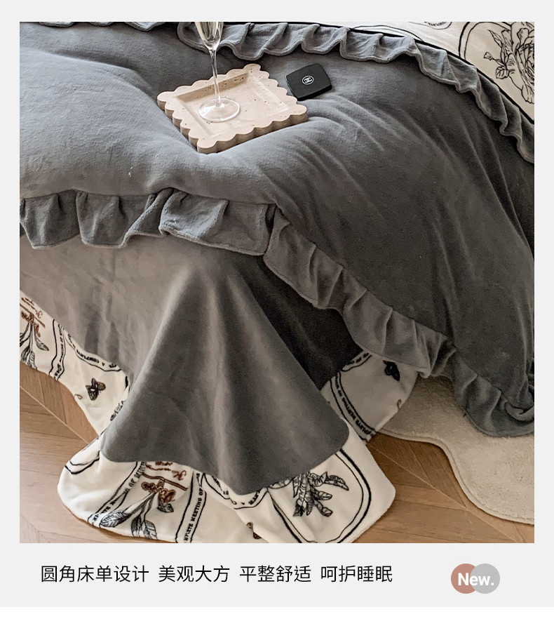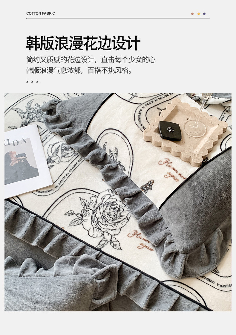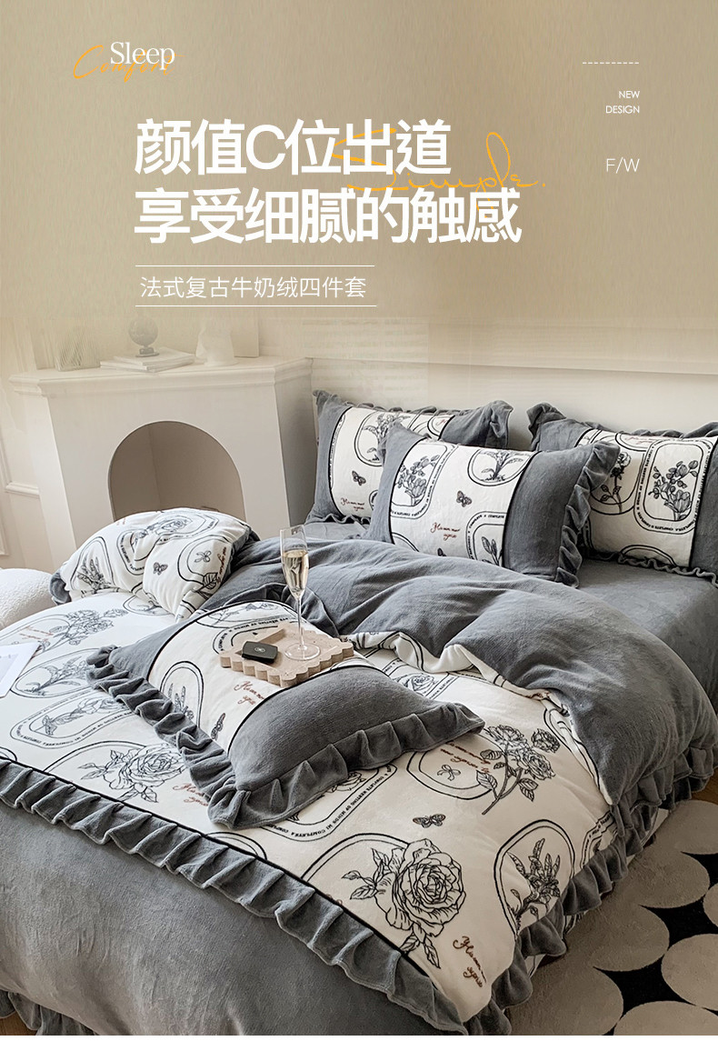 商品名称:吾欢心 2024新款法式复古韩版花边牛奶绒四件套 法式玫瑰