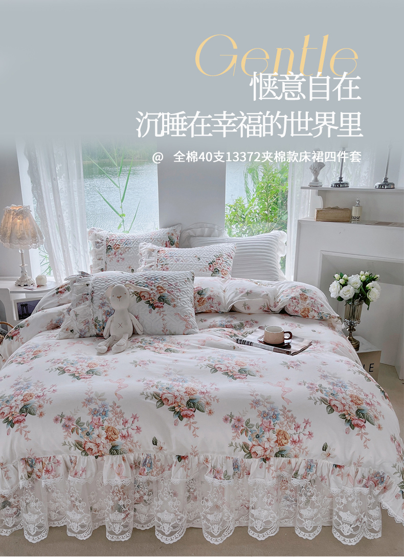 当前位置: 91家纺网 > 商品网购 > 床品套件 > 四件套 > 全棉普通四件套 > 胜权家纺 2024新款13372全棉夹棉宫廷风皇冠蕾丝床裙 梦吉