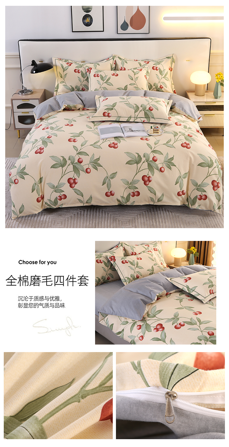商品名称:橘姿 2023升级喷气全棉磨毛四件套纯棉四件套加厚直播 硕果累累-黄