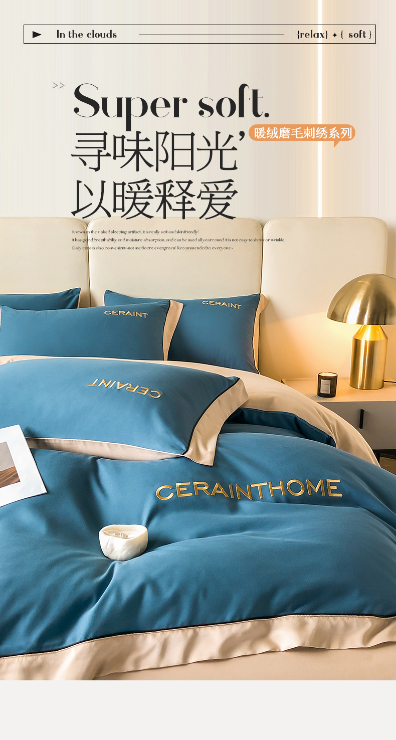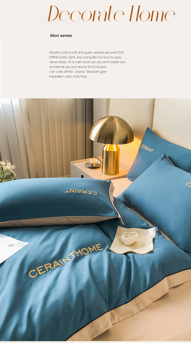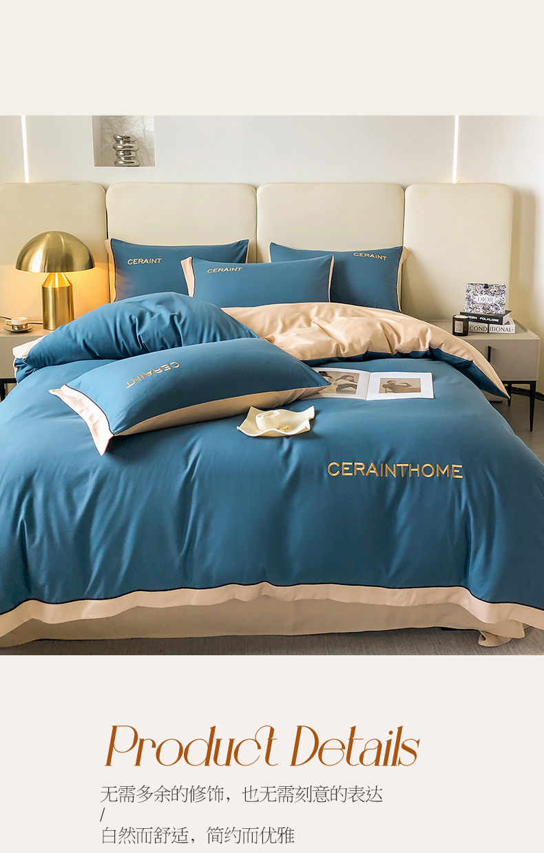 盛秋家纺 2025新款洛伦-麻绳款系列四件套 宾利蓝+奶茶