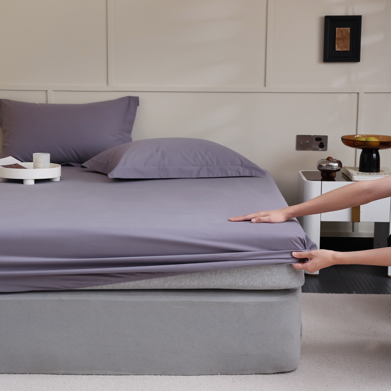 蕊姿家居 2023新款A类加厚50s超柔全棉长绒棉磨毛床笠 蓝莓灰