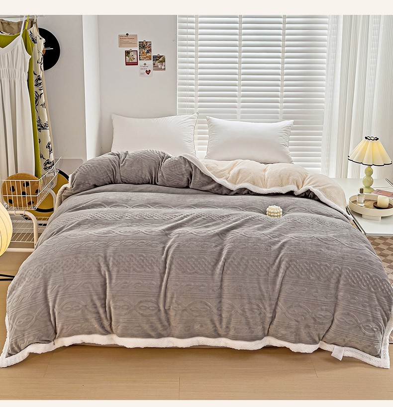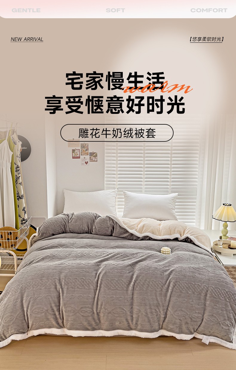 法澳 2023新款220克牛奶绒雕花烂花多功能单被套 爱莎-浅灰