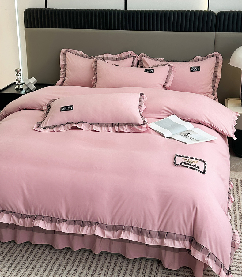 (总)小主驾到 2023新款韩版公主风荷叶边少女心四件套黑色蕾丝纱-画纱