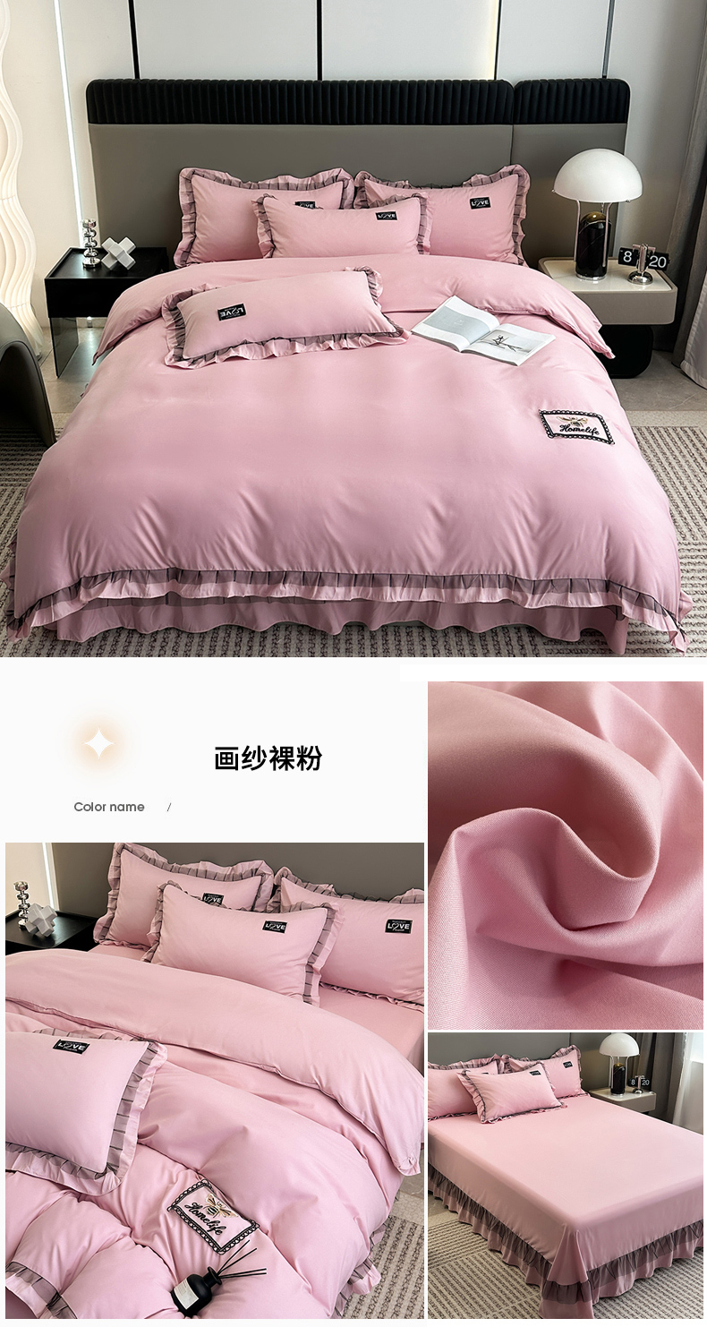 (总)2023新款韩版公主风水洗棉拼色灰色花园系列四件套,灰色花园 白色,灰色花园 纯灰,灰色花园 豆绿,灰色花园 裸粉,灰色花园 浅蓝,灰色花园 紫色