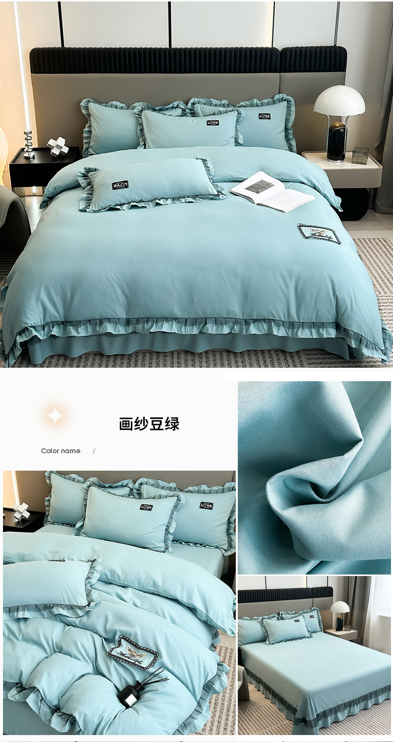 (总)小主驾到 2024新款兔毛绒牛奶绒花边款轻奢法式赫本风四件套,五十度兰,五十度灰,五十度绿