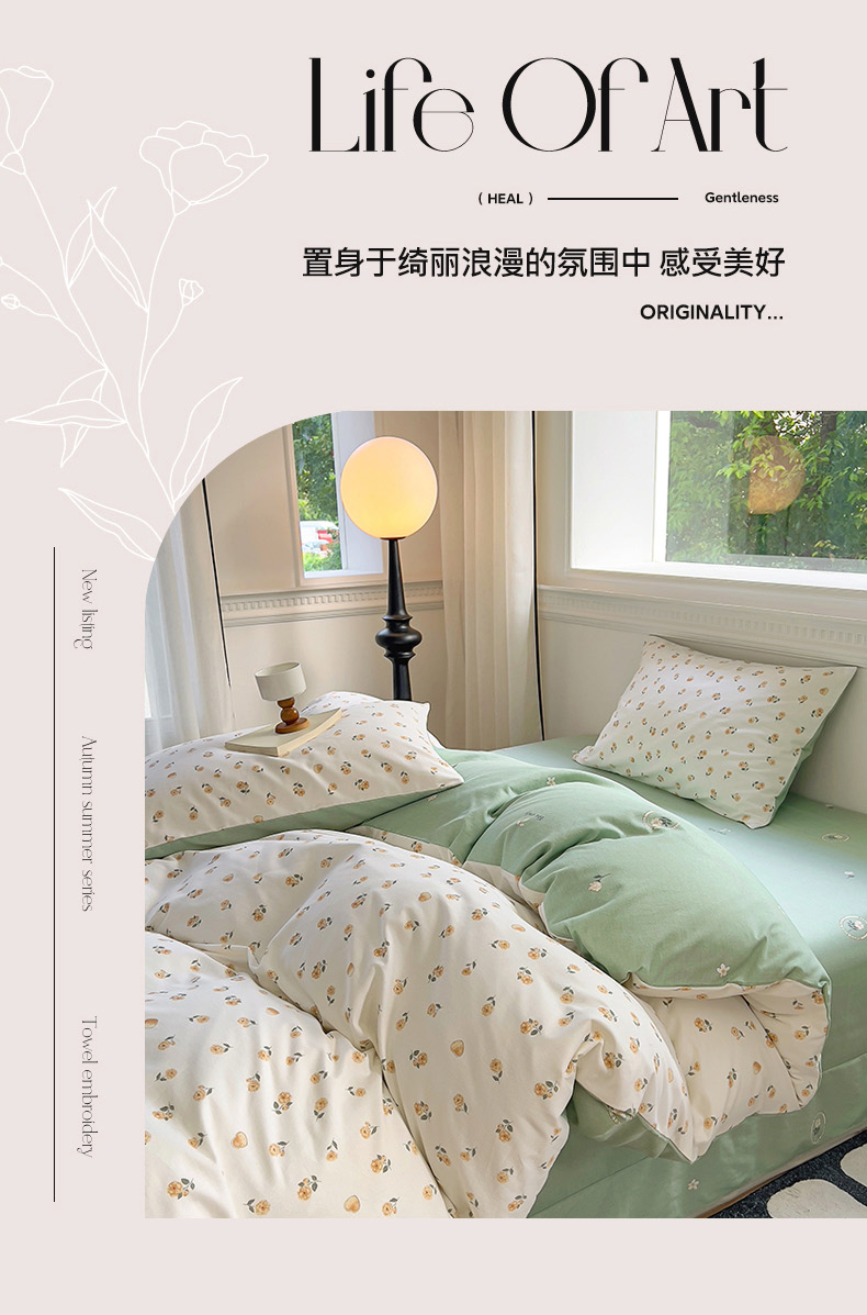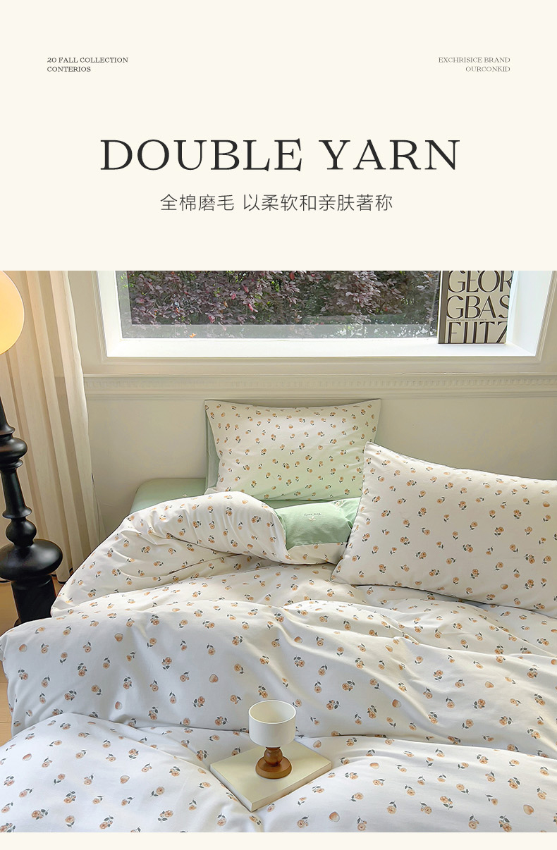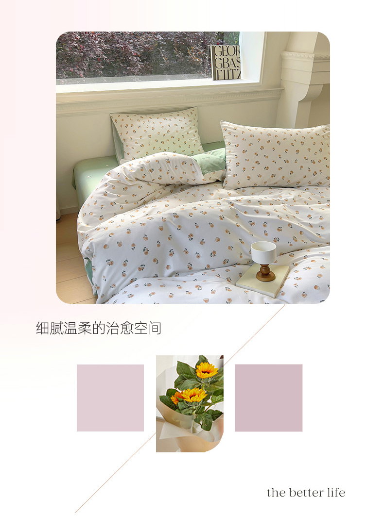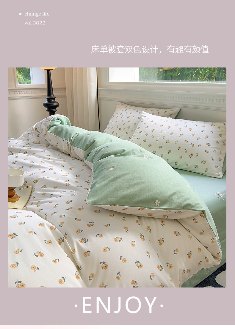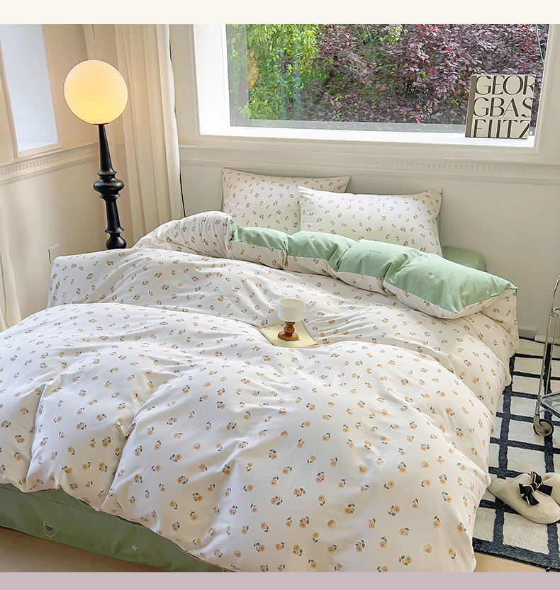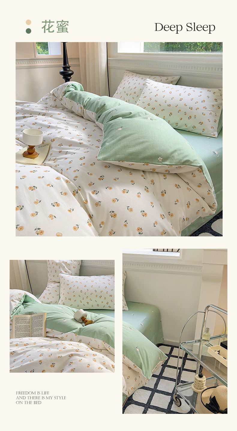 (总)田野 2022新款水洗棉小清新小碎花全棉四件套,花丛,花涧,绿婉,曼舞,桃夭,甜馨草莓,兔兔,银杏