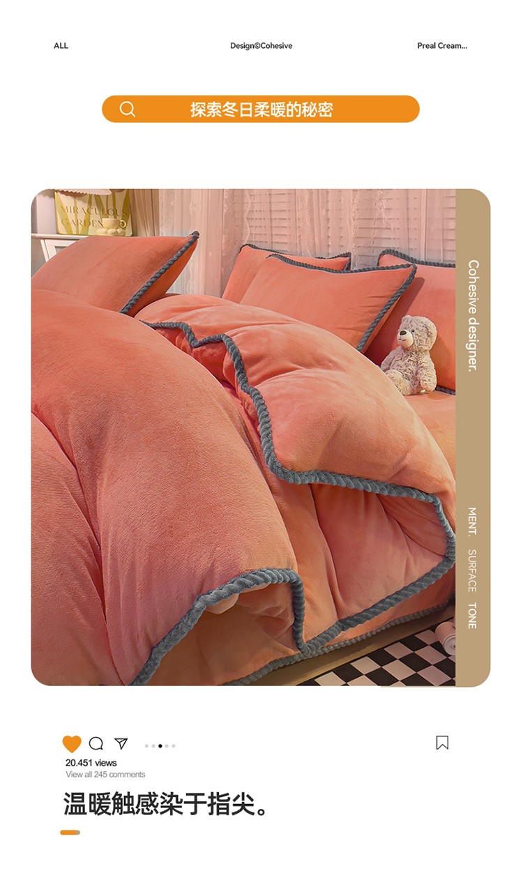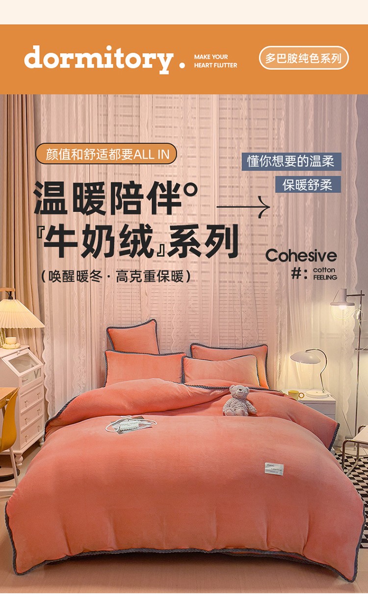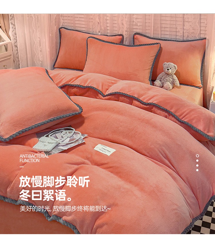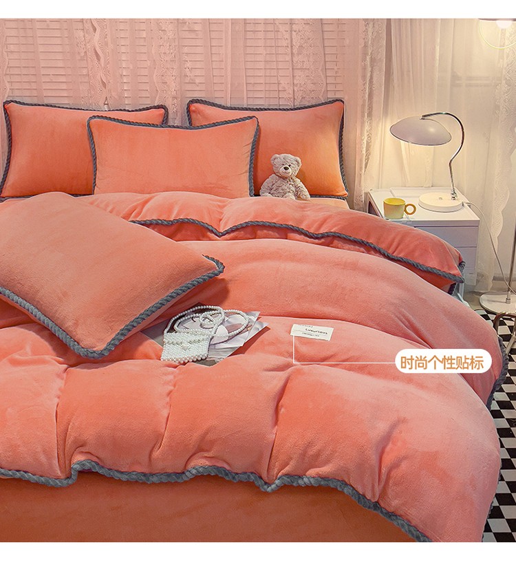 商品名称:2023新款加厚牛奶绒纯色优雅四件套 优雅-橙色