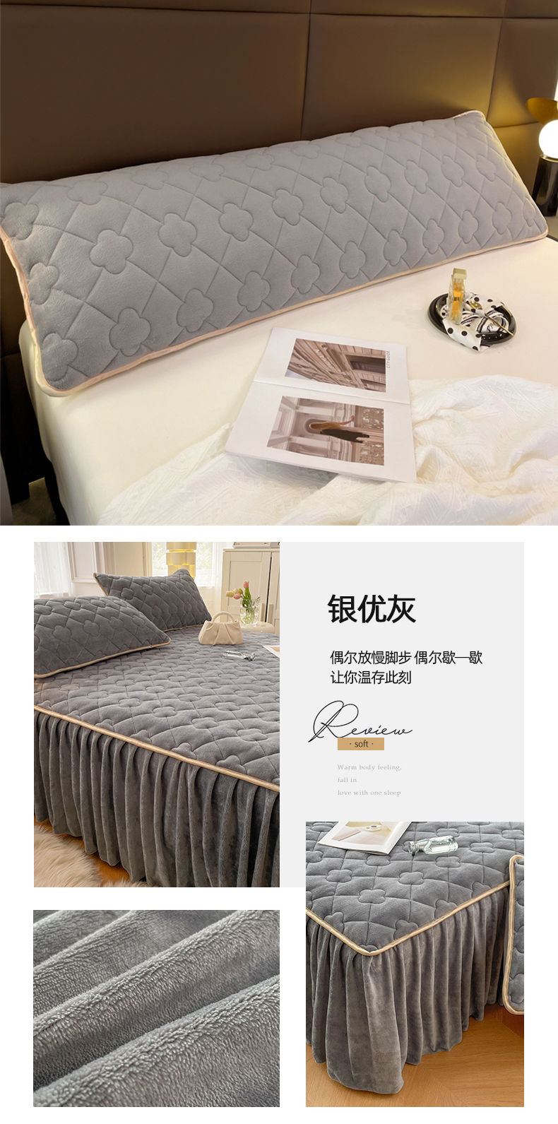 商品名称:梦舒羽 2025新款牛奶绒夹棉长枕套宿舍双人枕芯套 银优灰