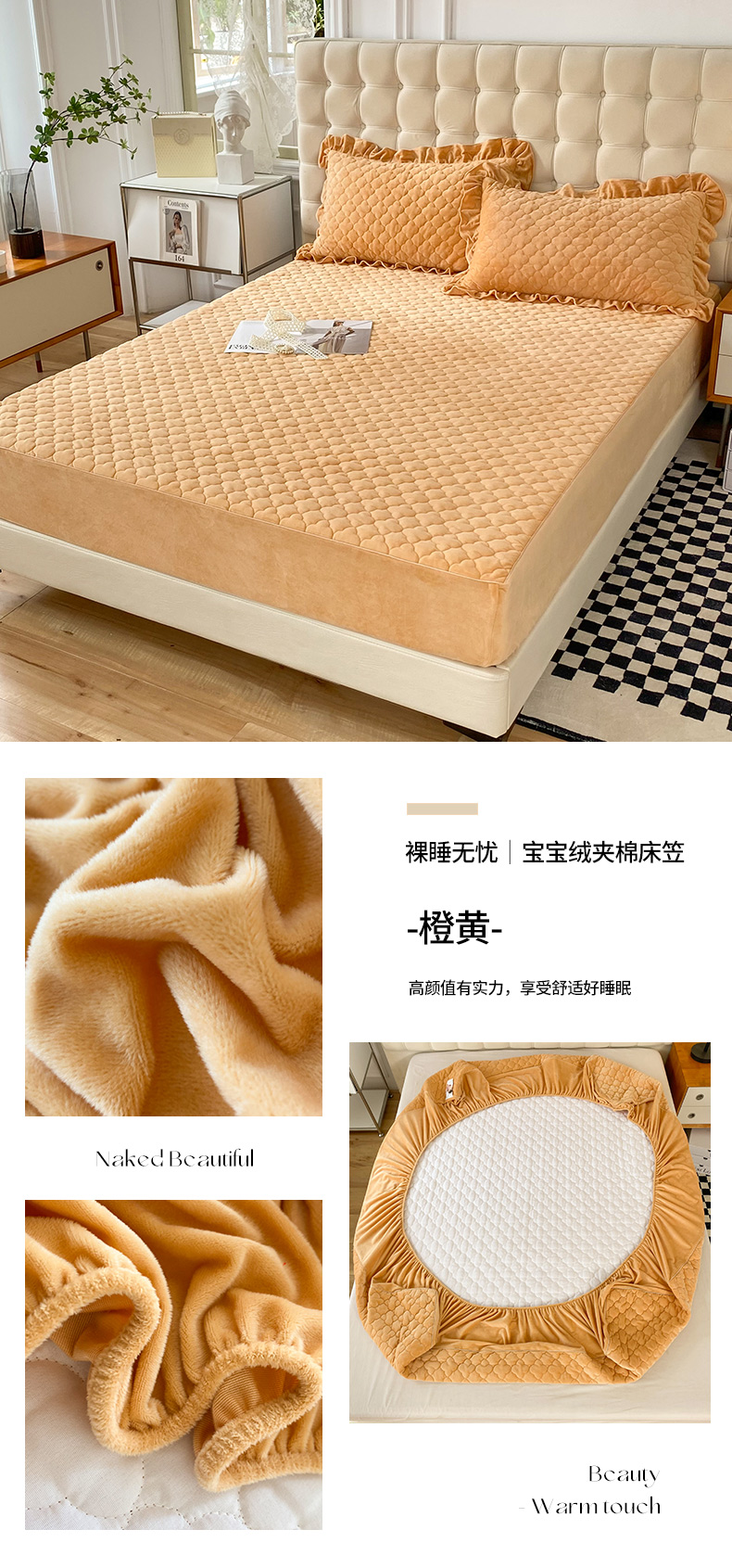 商品名称:7V 2023新款宝宝绒床笠牛奶绒360度全包围床笠 橙黄