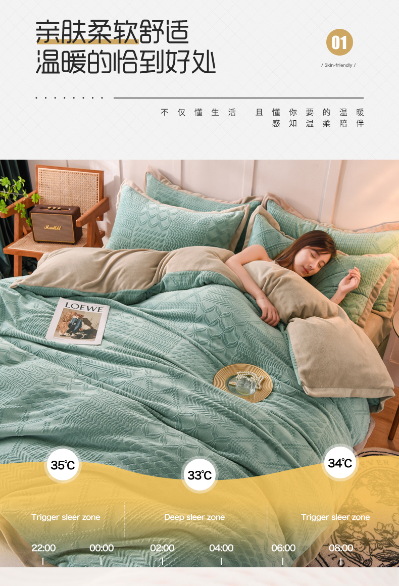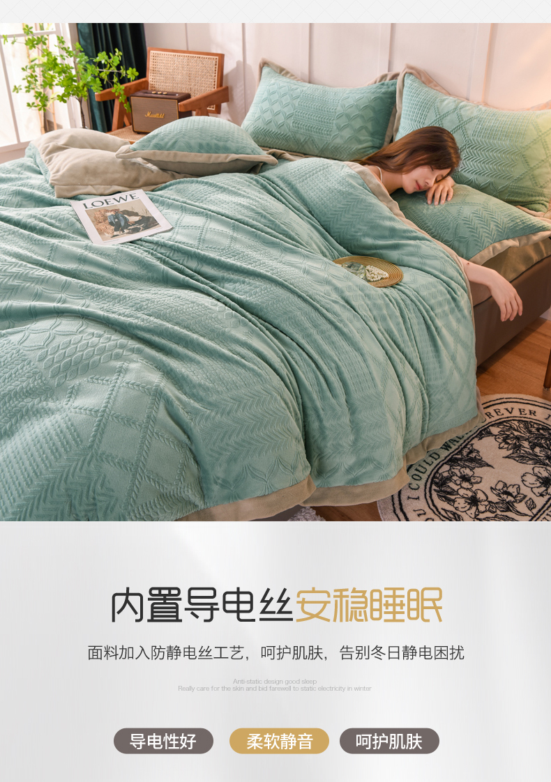(总)丝印良品2023秋冬新款唯爱雕花A版260克牛奶绒四件套-实拍款