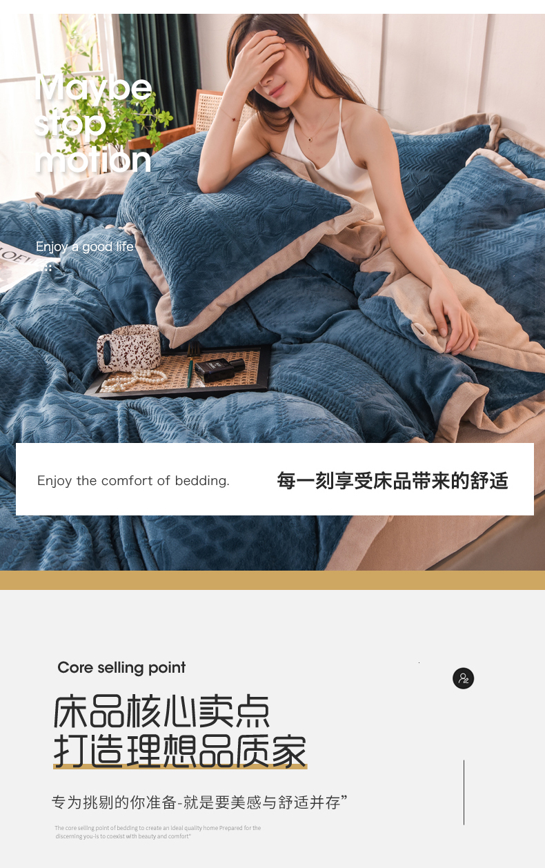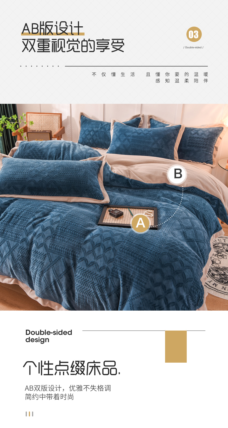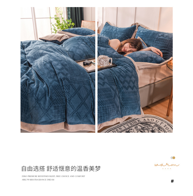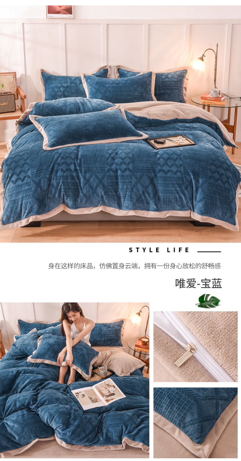 商品名称:丝印良品 2023唯爱雕花A版260克牛奶绒四件套-相机款 唯爱-宝蓝