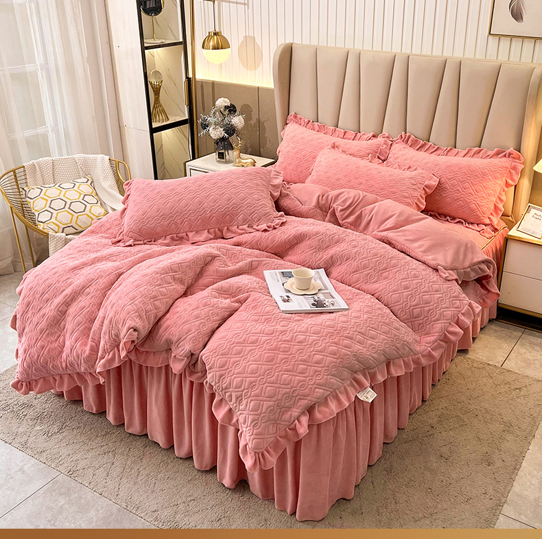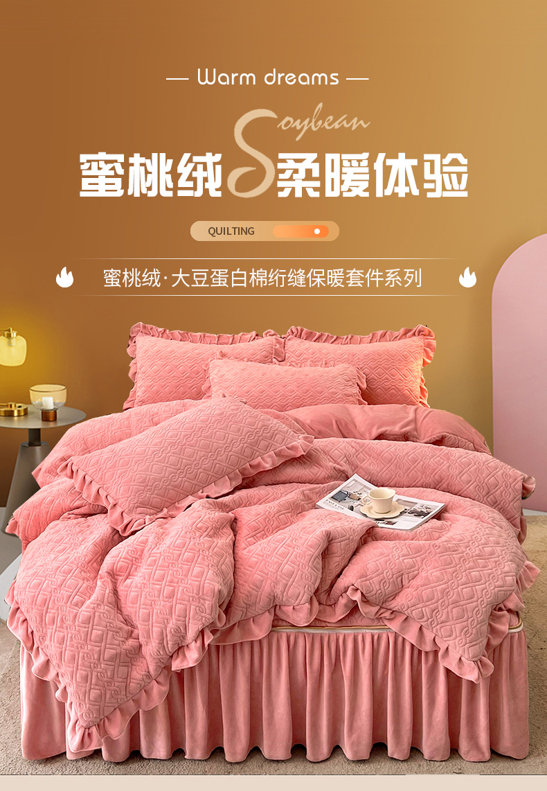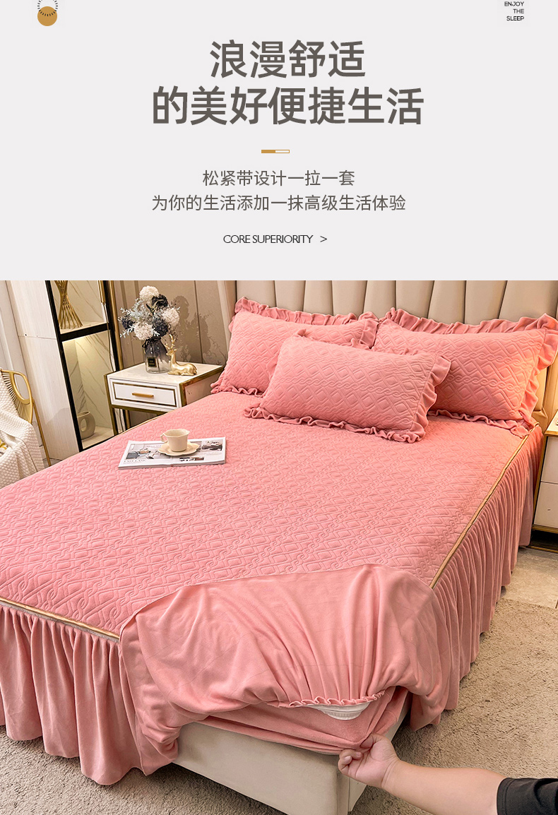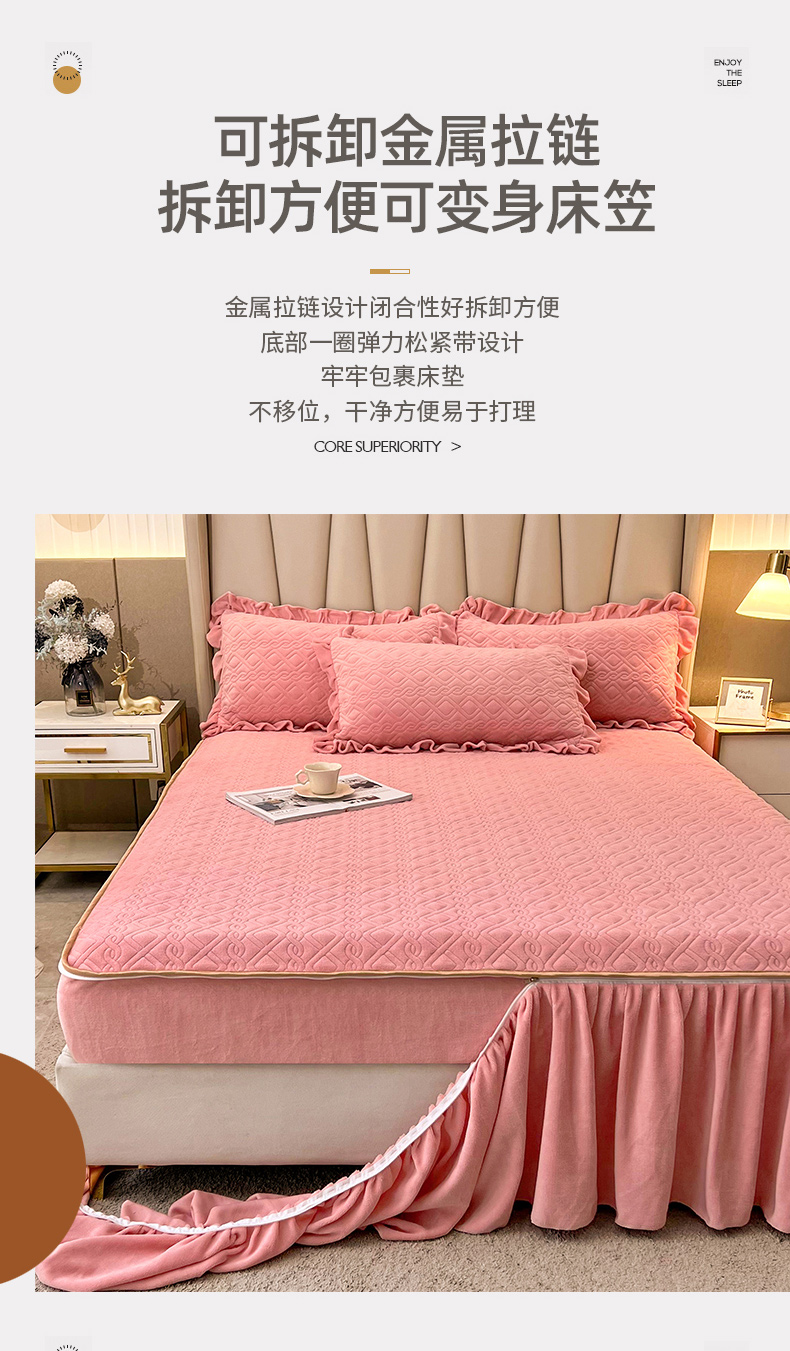当前位置: 91家纺网 > 商品网购 > 床品套件 > 四件套 > 牛奶绒四件套 > 恋尚 2023新款加厚高克重蜜桃绒床笠式床裙四件套可脱卸四件套 微光-粉玉