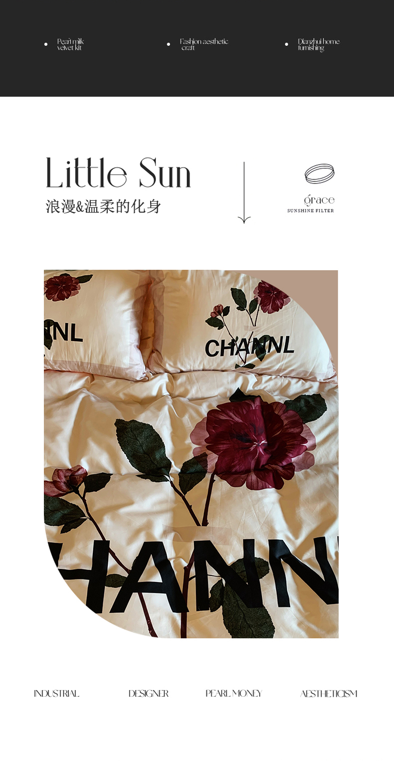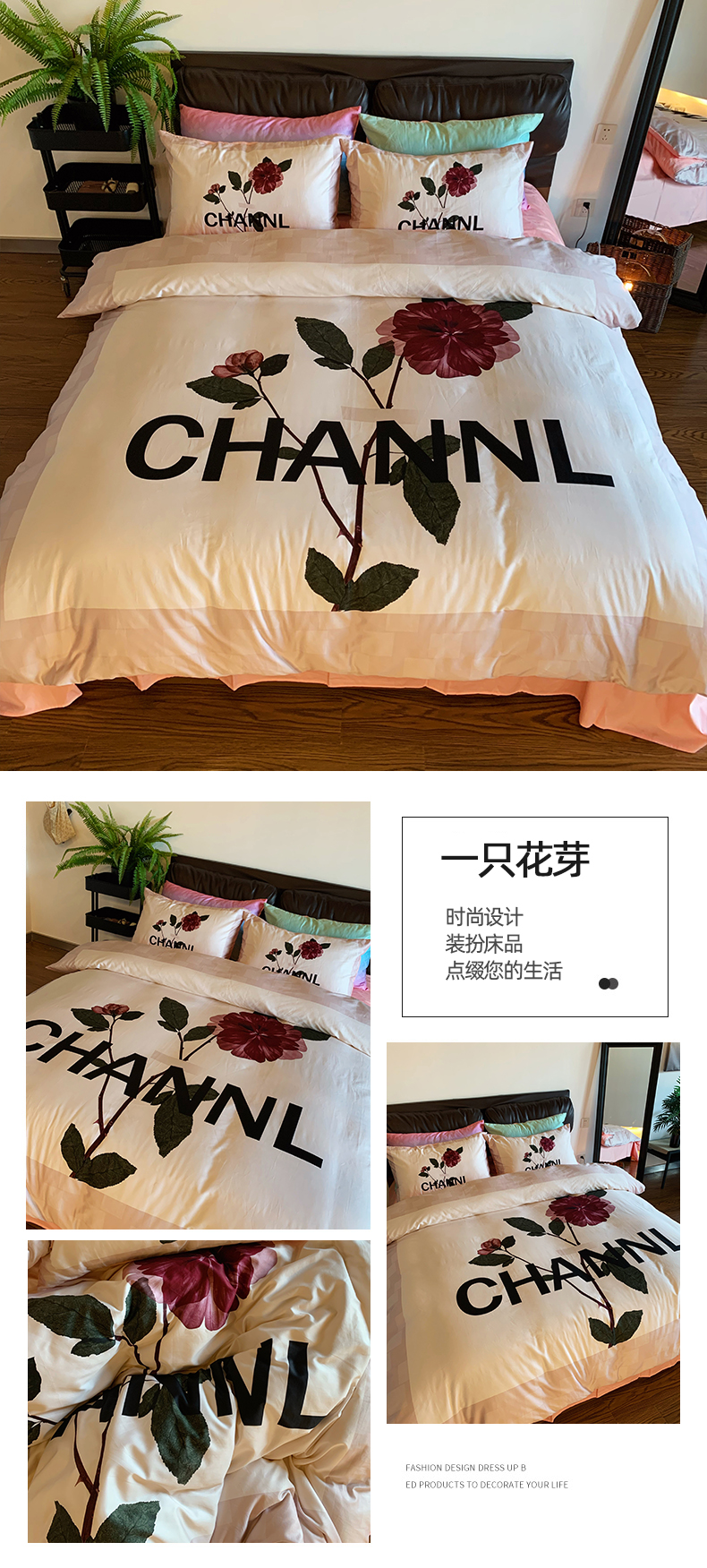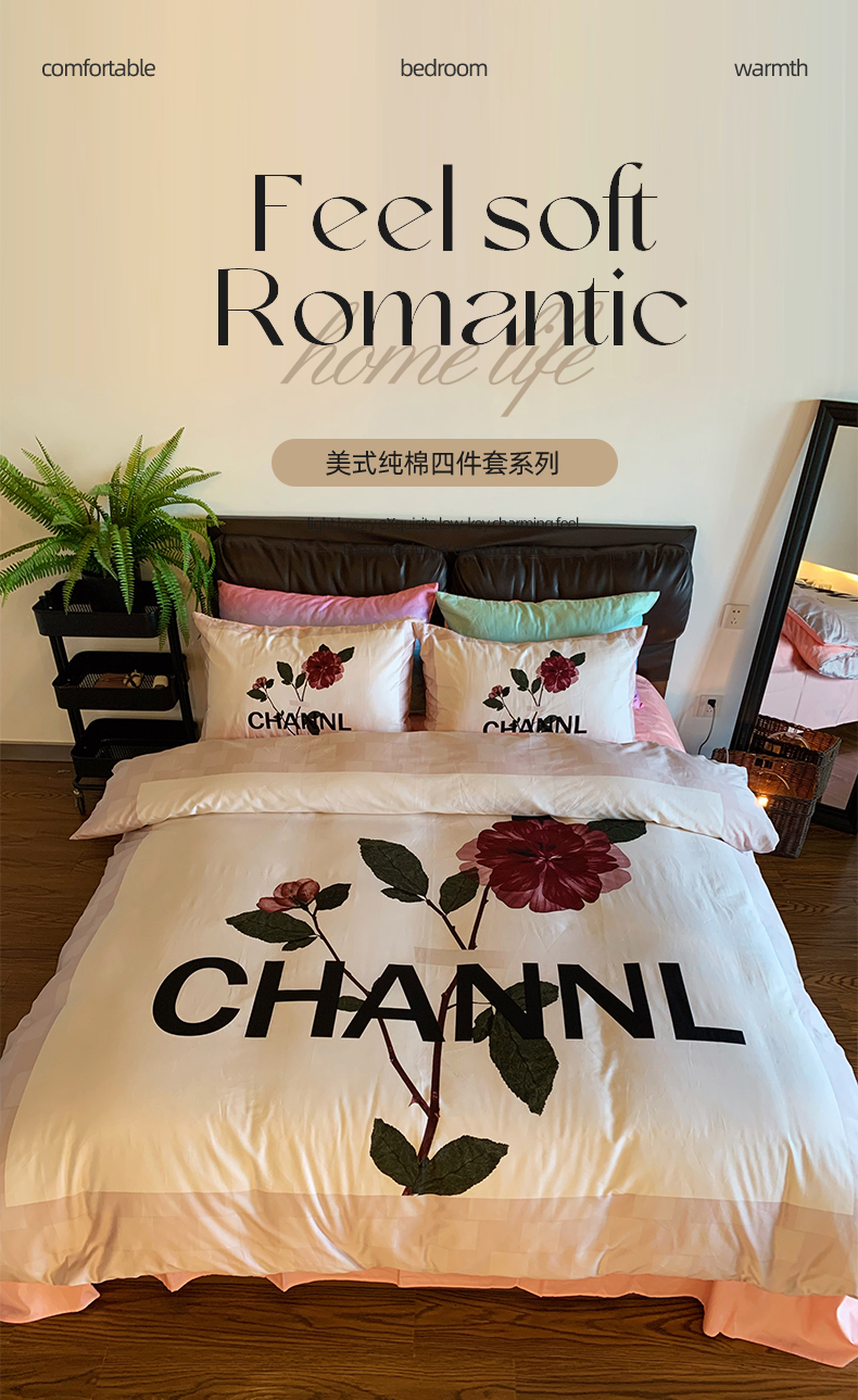 (总)花沐家居 2025新款数码印花潮牌云朵棉四件套,白色小香,粉豹纹,黑白老花,黑色小香,花千树,景年,蓝幕,绿色花朵,兮兔,小白熊,小黑熊,英伦熊