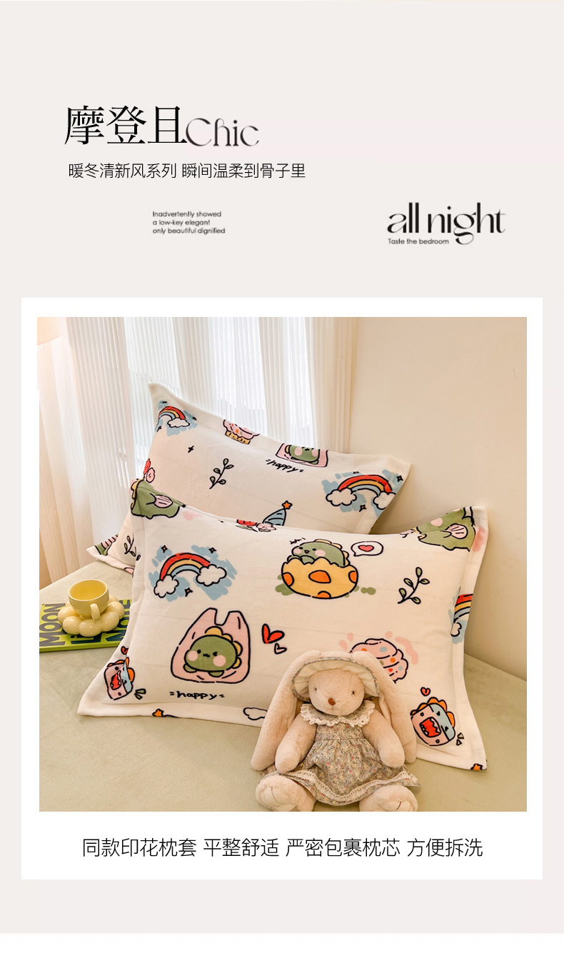 寐居家纺 2023新款小清新牛奶绒印花被套 假日恐龙