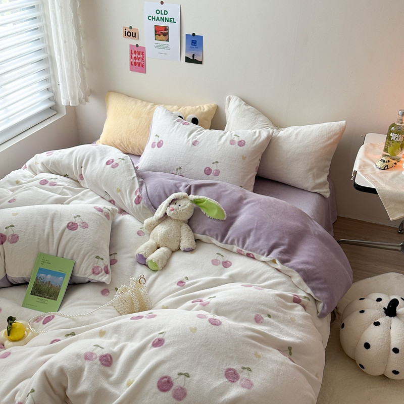 当前位置: 91家纺网 > 商品网购 > 床品套件 > 四件套 > 牛奶绒四件套 > 柚子 2023新款牛奶绒四件套-小众混搭系列 丁香樱桃
