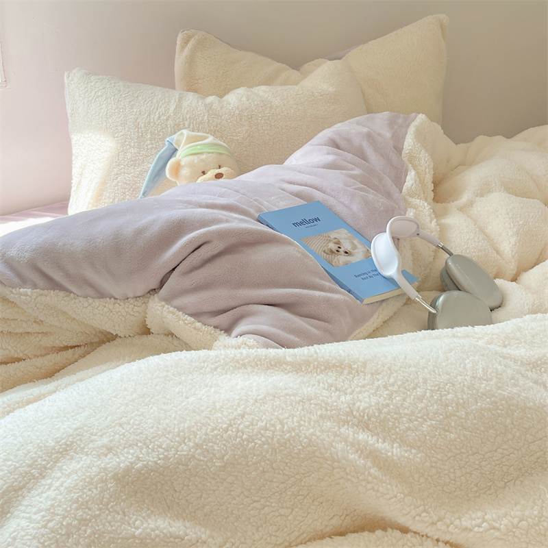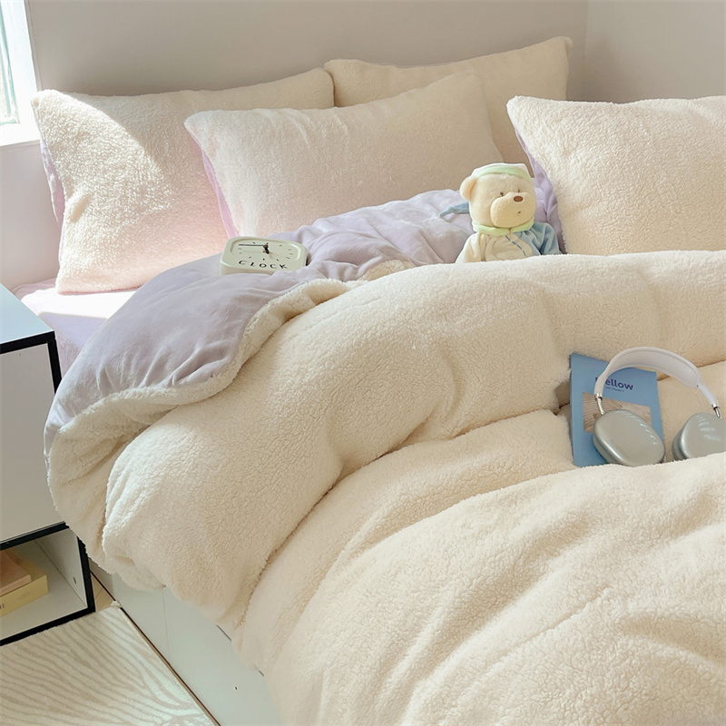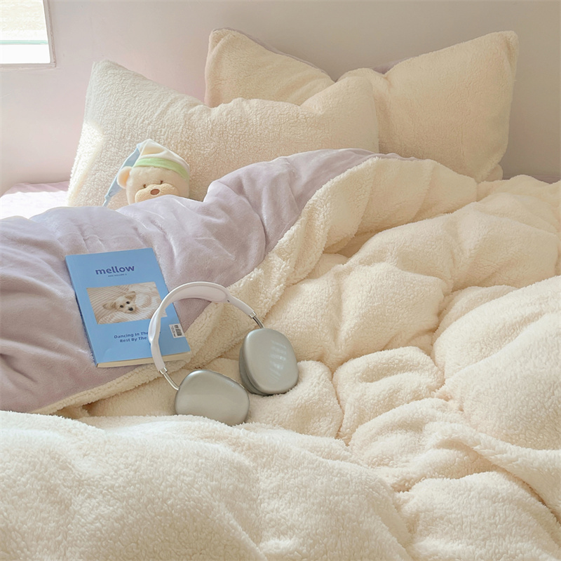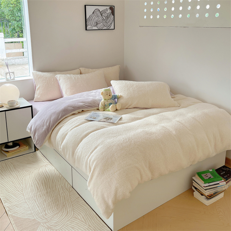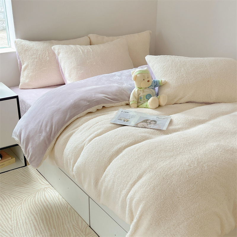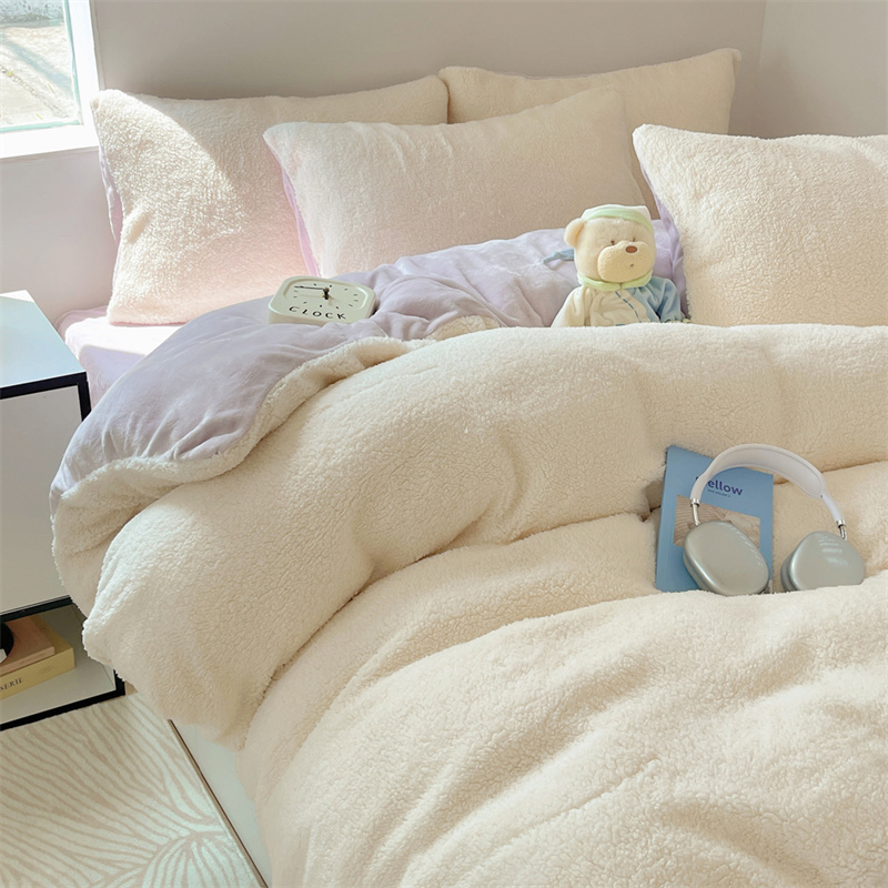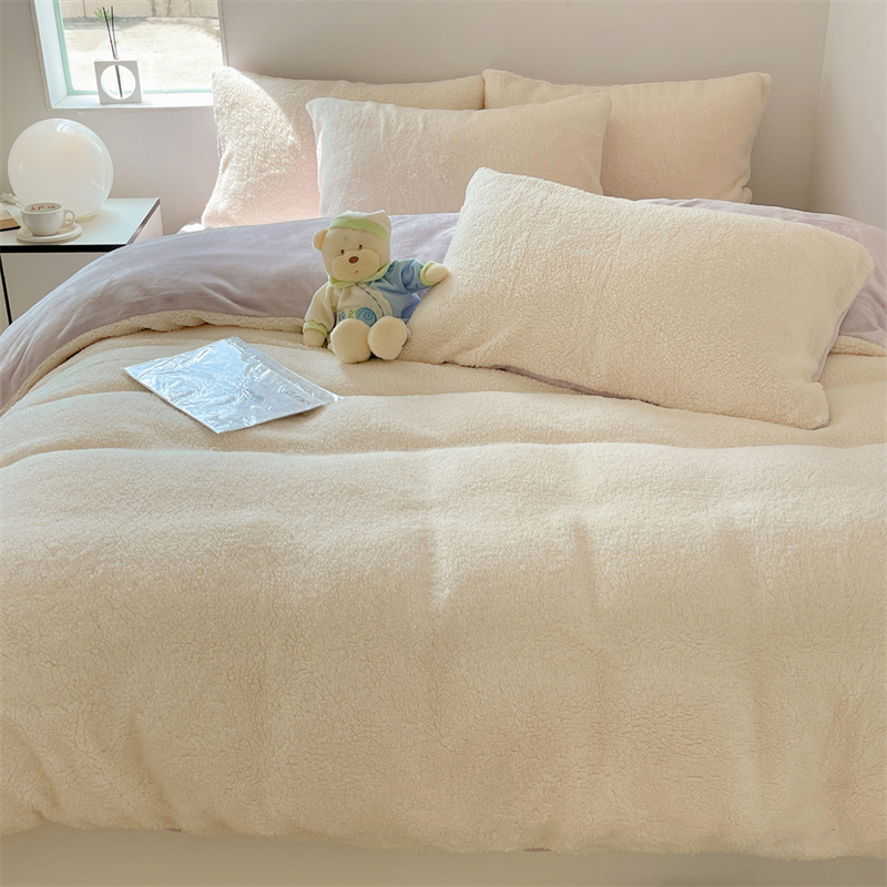 顾里家纺 2023新款ins牛奶羊羔绒四件套 羊羔米