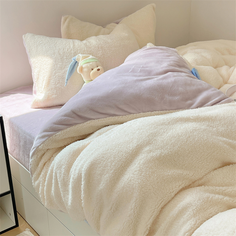 (总)顾里家纺 2024新款ins韩系牛奶羊羔绒套件,羊羔粉黄,羊羔白蓝,羊羔黄蓝,羊羔灰,羊羔咖,羊羔蓝,羊羔蓝黄,羊羔绿粉,羊羔米,羊羔奶黄,羊羔暖咖,羊羔紫